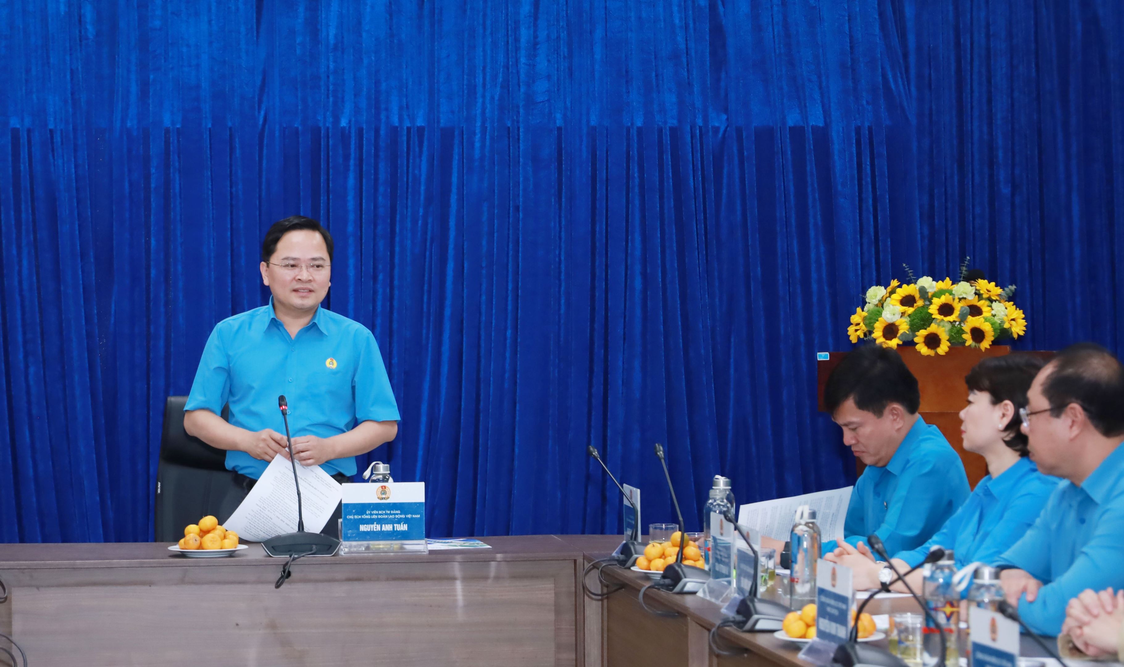 Chủ tịch Tổng Liên đoàn Lao động Việt Nam Nguyễn Anh Tuấn phát biểu kết luận buổi làm việc