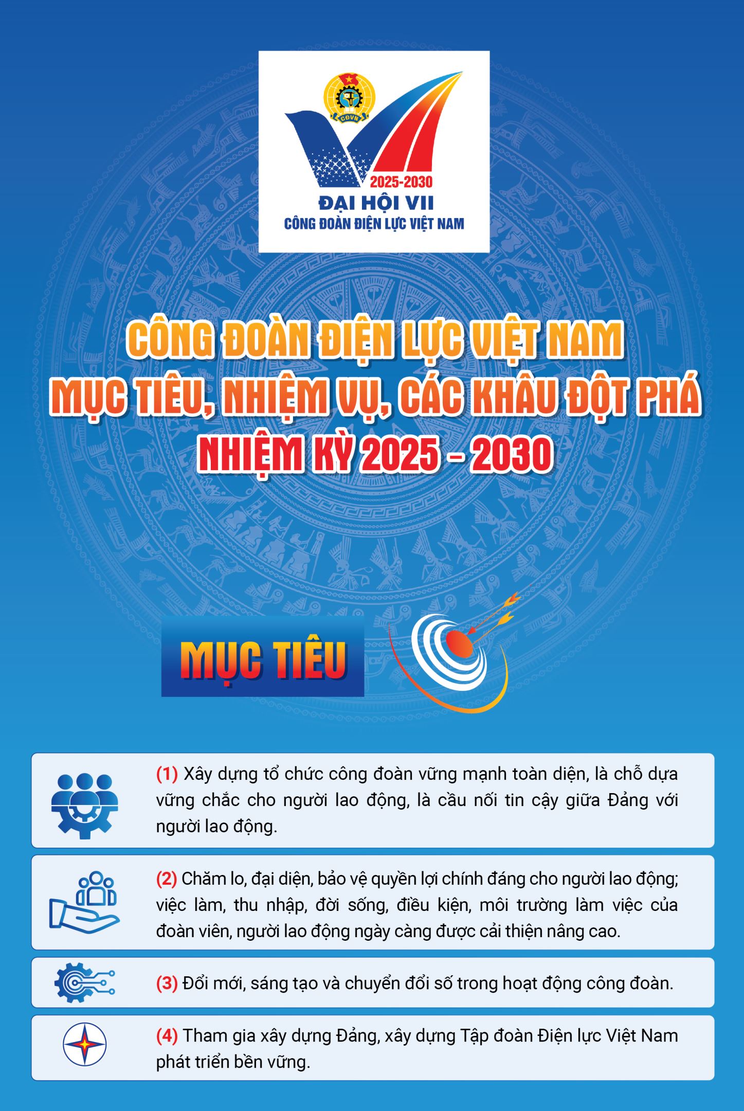 Công đoàn Điện lực Việt Nam xác định rõ những mục tiêu, nhiệm vụ, các khâu đột phá trong nhiệm kỳ 2025 – 2030, quyết tâm thực hiện thắng lợi Nghị quyết Đại hội lần thứ VII đề ra.