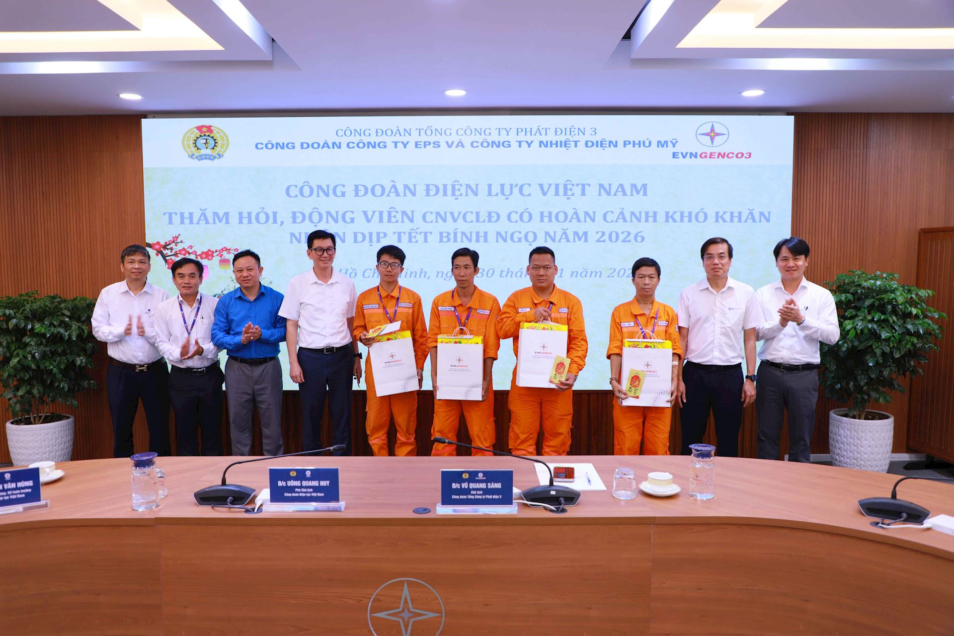 Đoàn công tác của Công đoàn Điện lực Việt Nam (ĐLVN) do đồng chí Uông Quang Huy - Phó Chủ tịch Công đoàn ĐLVN dẫn đầu vừa đến thăm, động viên và tặng quà chúc Tết tập thể và người lao động các công đoàn cơ sở trực thuộc Công đoàn Tổng công ty Phát điện 3 (EVNGENCO3), tại TP. Hồ Chí Minh.