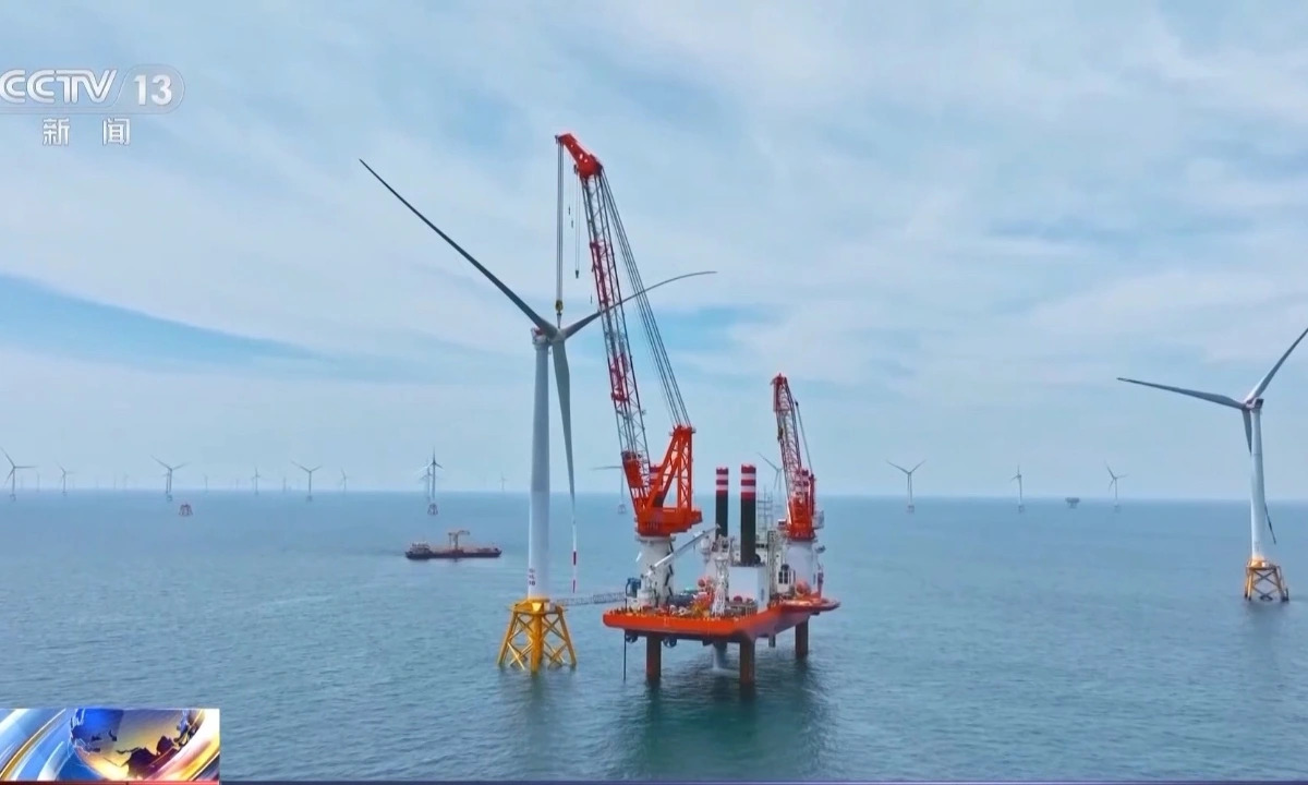 Dự án điện gió ngoài khơi xa nhất Trung Quốc ở tỉnh Giang Tô. Ảnh: CCTV