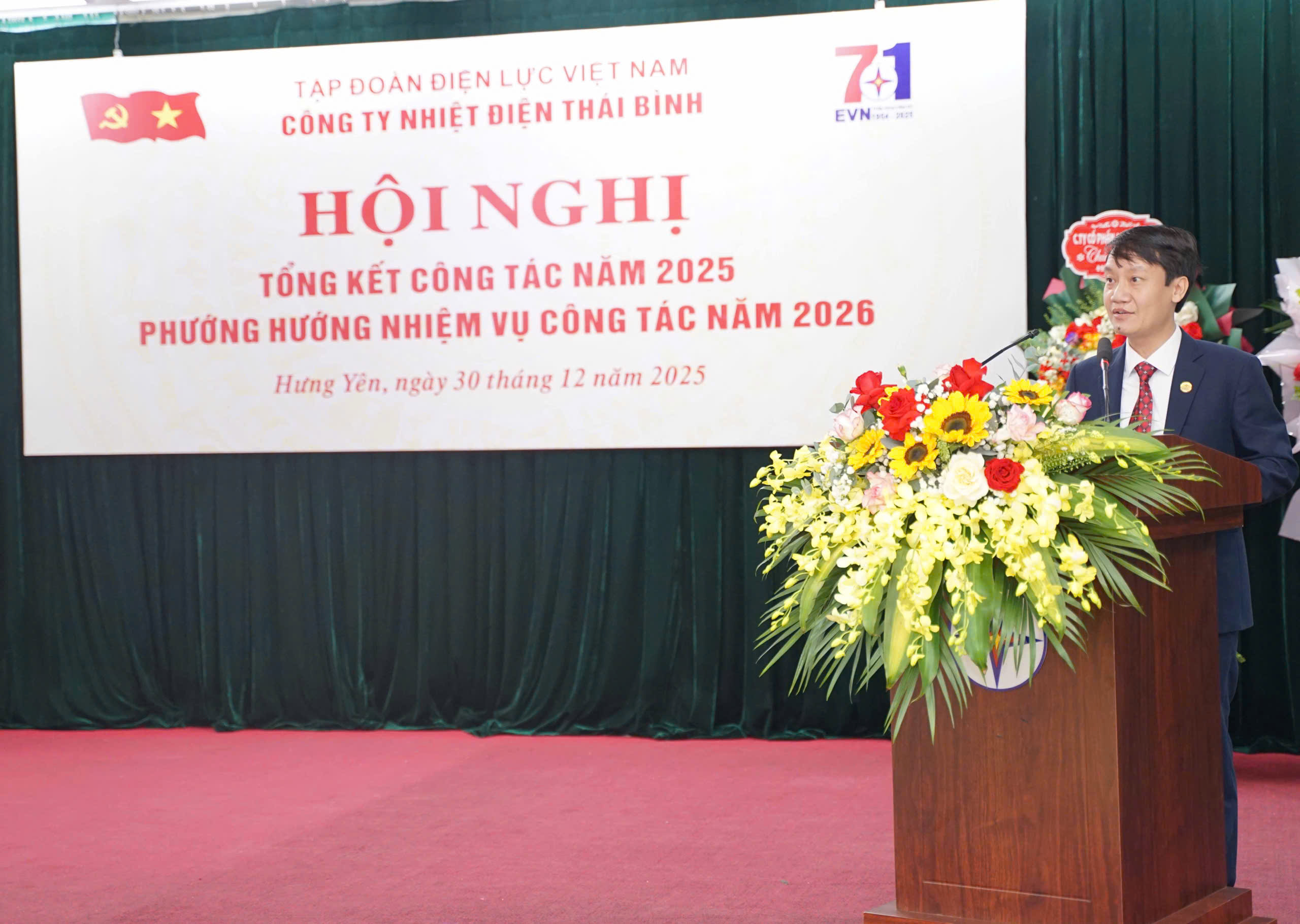 Nhấn mạnh những nhiệm vụ trọng tâm năm 2026, về công tác đảng, Phó Tổng giám đốc EVN yêu cầu Đảng bộ Công ty Nhiệt điện Thái Bình sau khi chuyển về trực thuộc Đảng bộ xã Đông Thái Ninh cần tiếp tục phát huy nề nếp, phối hợp tốt với các ban xây dựng Đảng của cấp ủy địa phương, trở thành Đảng bộ tiêu biểu của địa phương.