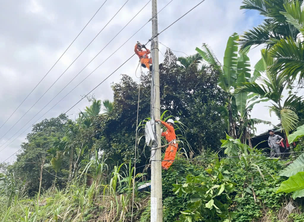 Nhân viên Đội QLĐ Trà My triển khai cấp điện cho người dân
