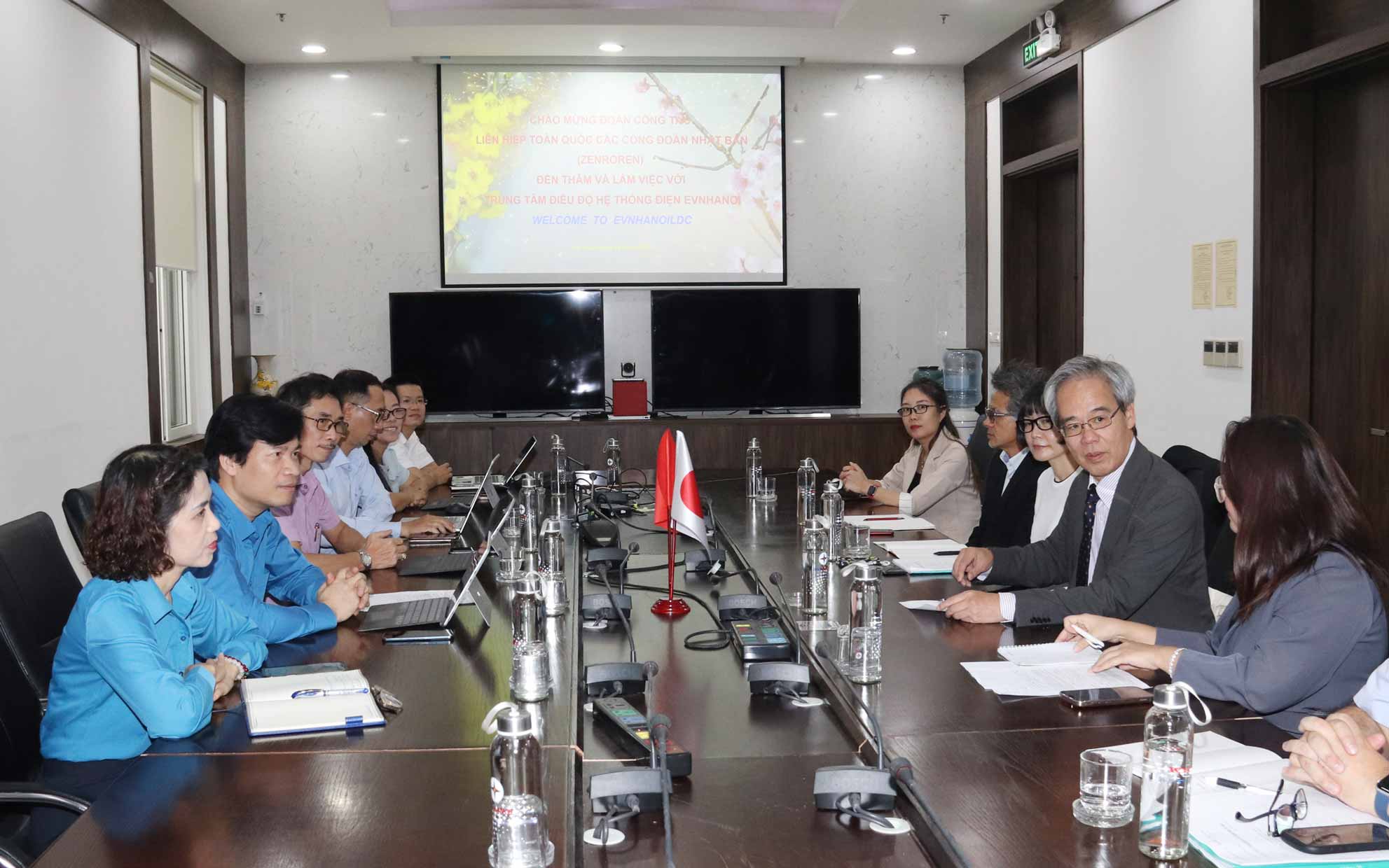 Trước đó, đoàn công tác của ZENROREN đã có buổi thăm, làm việc tại Trung tâm Điều độ Hệ thống điện TP. Hà Nội (thuộc Tổng công ty Điện lực TP. Hà Nội). Tiếp đoàn có ông Đoàn Đức Tiến - Chủ tịch Công đoàn Tổng công ty Điện lực TP. Hà Nội (EVNHANOI) cùng các Phó Chủ tịch Công đoàn EVNHANOI, lãnh đạo các ban của Công đoàn Tổng công ty, lãnh đạo Trung tâm Điều độ Hệ thống điện TP. Hà Nội và Chủ tịch Công đoàn của Trung tâm.