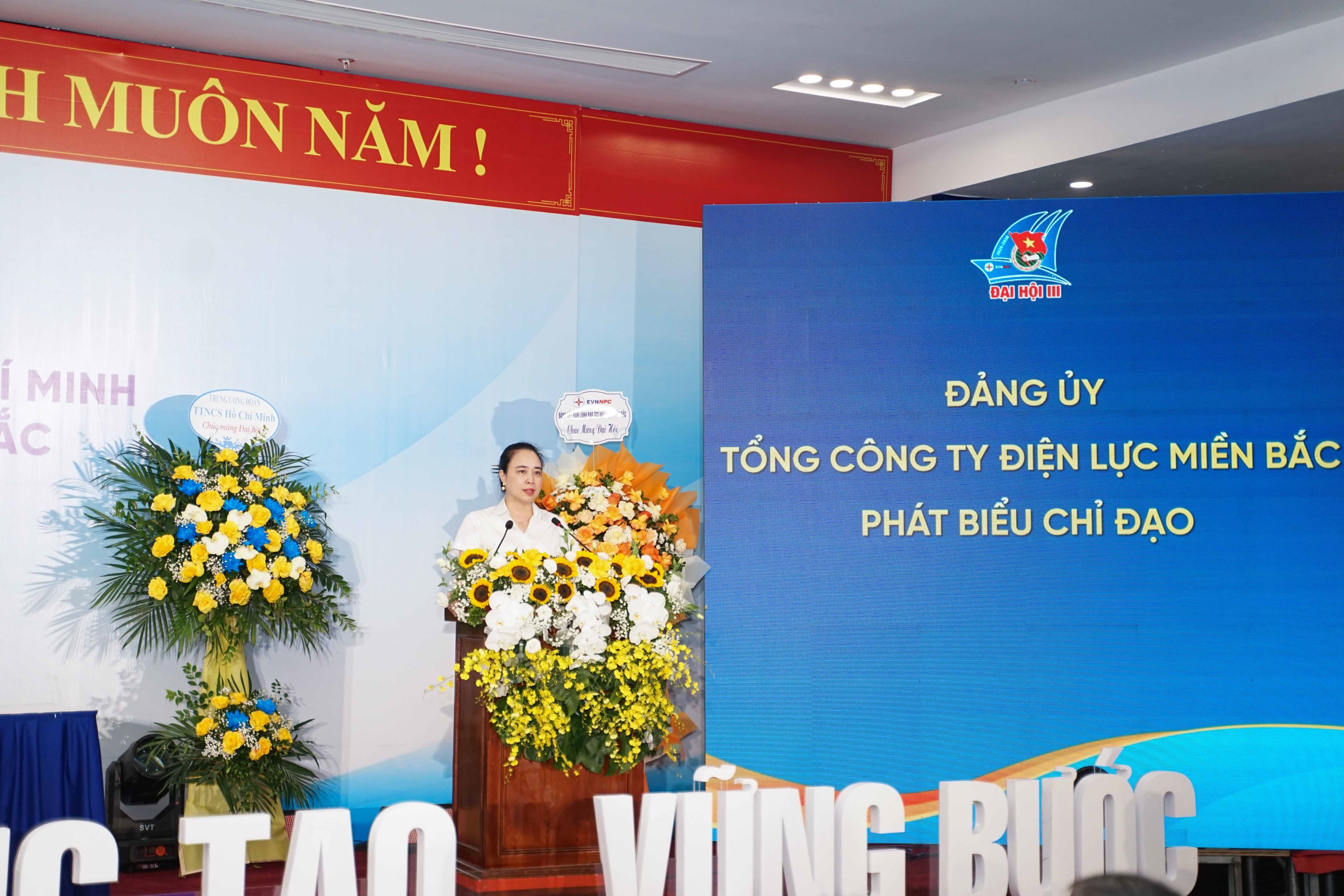 Đồng chí Đỗ Nguyệt Ánh - Bí thư Đảng uỷ, Chủ tịch HĐTV EVNNPC phát biểu tại Đại hội