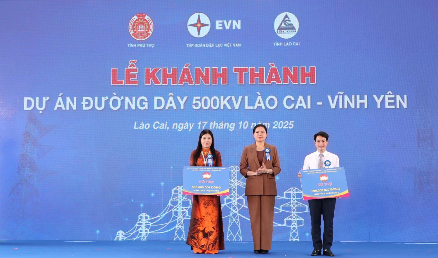 Tiếp đó, Tập đoàn Điện lực Việt Nam đã trân trọng trao tặng kinh phí hỗ trợ công tác an sinh xã hội cho tỉnh Lào Cai và tỉnh Phú Thọ với giá trị hỗ trợ mỗi tỉnh 1 tỷ đồng. Đây là tấm lòng tri ân và trách nhiệm xã hội của EVN, nhằm hỗ trợ các địa phương cải thiện hạ tầng phúc lợi, góp phần nâng cao đời sống nhân dân và phát triển bền vững kinh tế - xã hội.