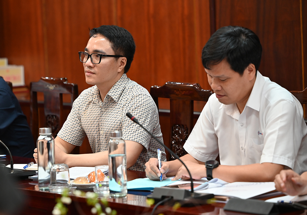 Ông Cao Quang Quỳnh - Thành viên Hội đồng thành viên EVN (bìa trái) tại buổi làm việc