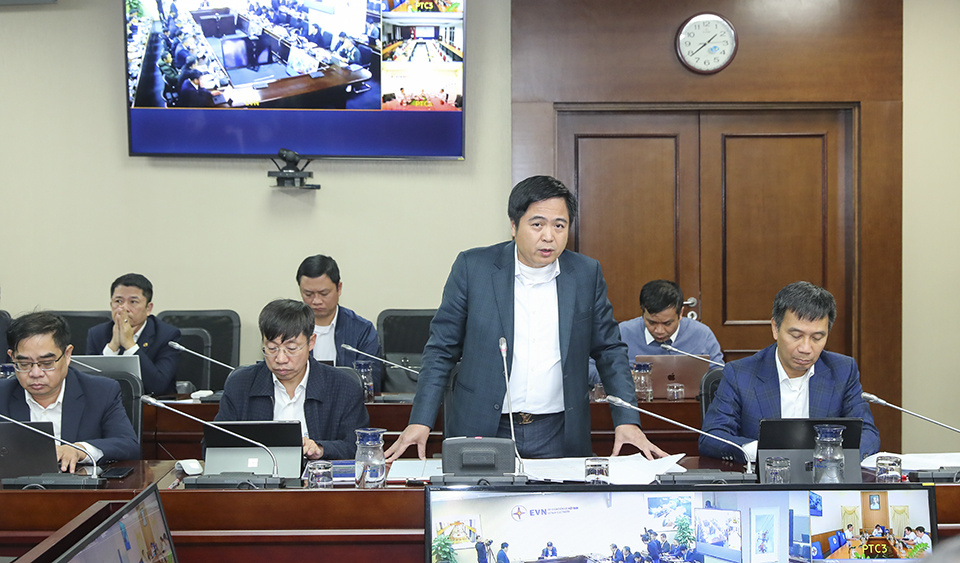 Tổng giám đốc EVNNPT Trương Hữu Thành báo cáo tại cuộc họp. Ảnh: Ng.Tuấn