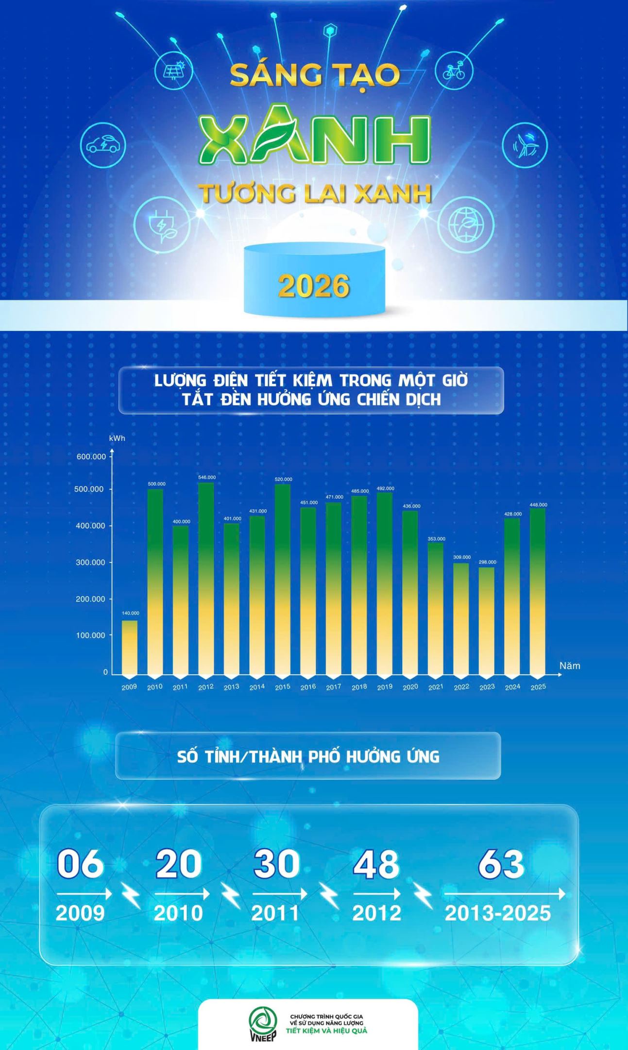 Cùng nhìn lại hành trình Việt Nam hưởng ứng Giờ Trái đất qua các năm và đón chờ sự kiện chính của Giờ Trái đất năm 2026 diễn ra từ 20h30-21h30 thứ Bảy, ngày 28/3/2026.