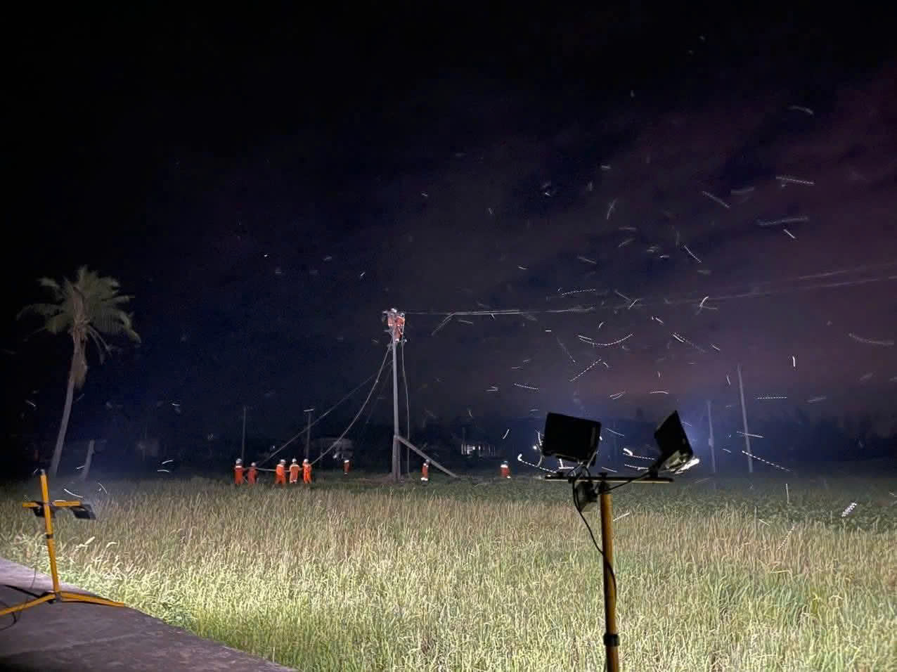 Tại đảo Nhơn Châu, các kỹ sư và công nhân của Công ty Điện lực Gia Lai làm việc miệt mài, để nhanh chóng có điện trở lại giúp người ổn định sinh hoạt, bám biển và duy trì nhịp sống sau bão.