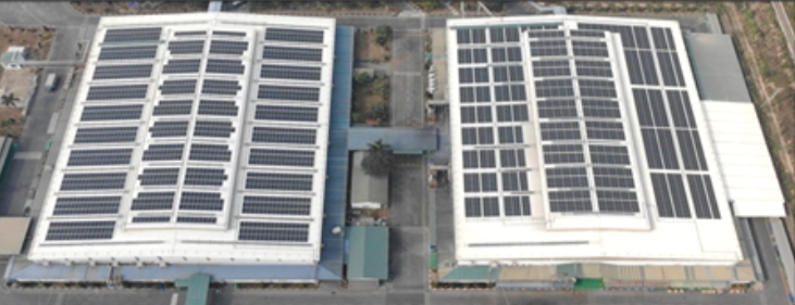 Hệ thống điện mặt trời áp mái đã được lắp đặt tại nhà máy.