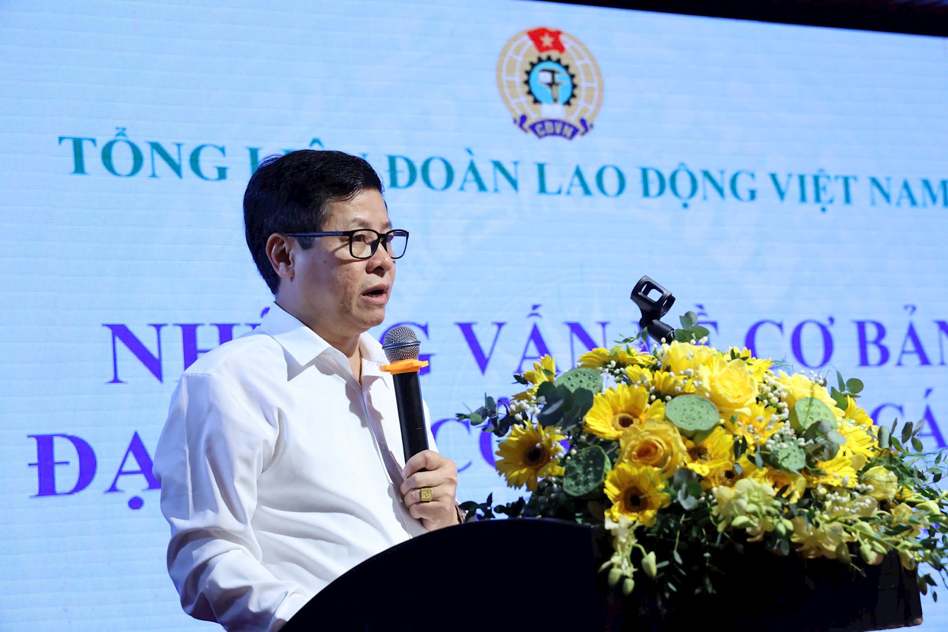 Ông Đoàn Đức Hân, Phó Trưởng ban Quan hệ lao động của Tổng Liên đoàn Lao động Việt Nam tập huấn các chuyên đề tại hội nghị