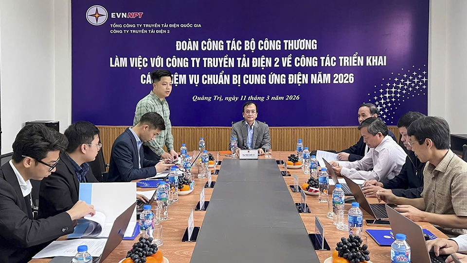 Ngày 11/3, tại Quảng Trị, đoàn công tác Bộ Công Thương do ông Trịnh Quốc Vũ – Phó Cục trưởng Cục Điện lực làm trưởng đoàn đã làm việc với Công ty Truyền tải điện 2 (PTC2) về các giải pháp tăng cường bảo đảm vận hành an toàn, tin cậy lưới điện truyền tải khu vực miền Trung trong năm 2026.