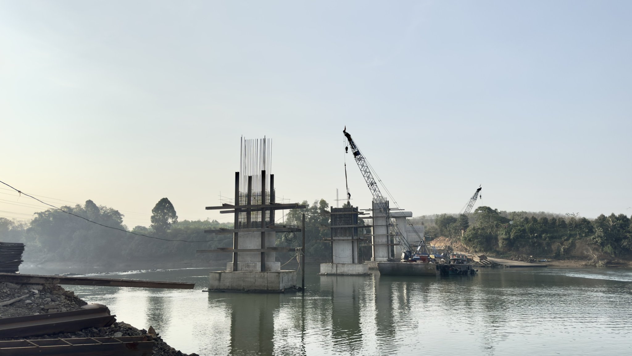 Ngoài chức năng vận chuyển vật tư, thiết bị trong quá trình thi công dự án thủy điện Trị An mở rộng, cầu Hiếu Liêm còn phục vụ nhu cầu đi lại của người dân địa phương, tăng cường kết nối giao thông, thúc đẩy phát triển kinh tế - xã hội khu vực sau khi dự án thủy điện hoàn thành. Trong ảnh: Công trình cầu Hiếu Liêm đang được thi công xây dựng.