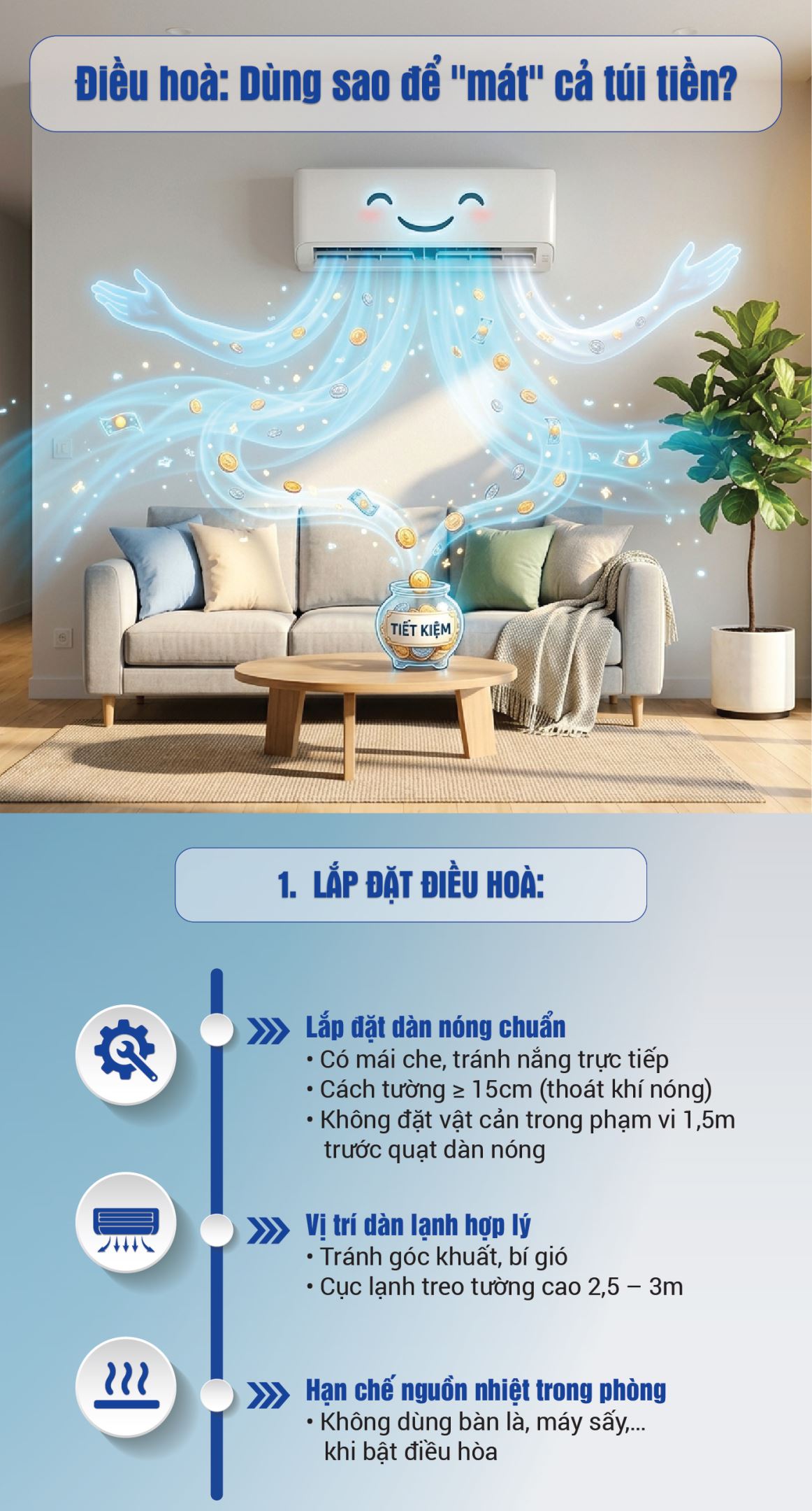 Hãy theo dõi Infographic dưới đây để bỏ túi ngay những "bí kíp" sử dụng điều hoà vừa mát rượi, vừa tiết kiệm.