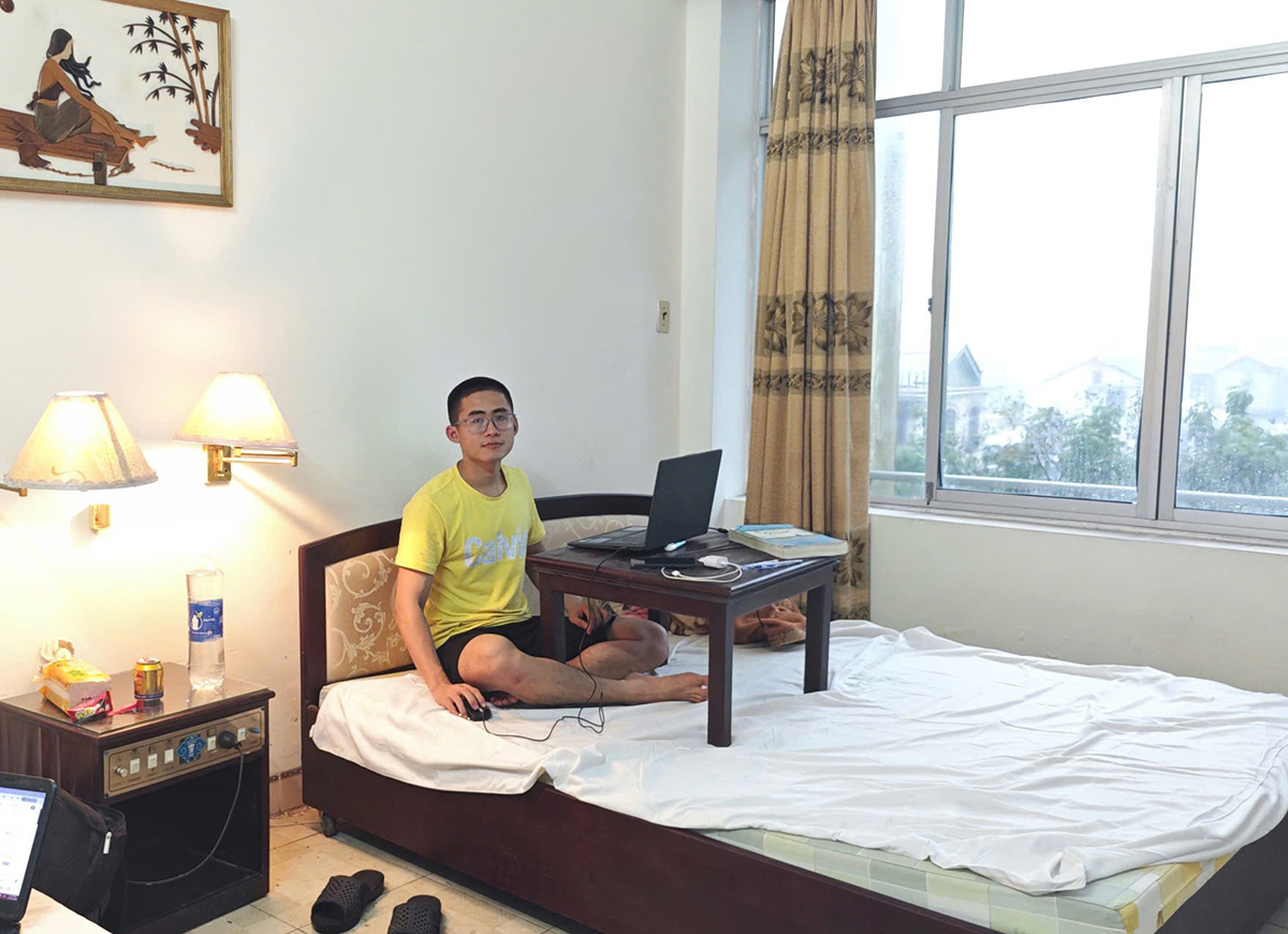 Sinh viên Cao Anh Khoa – một trong những người dân cư trú tránh lụt tại Nhà khách Điện lực