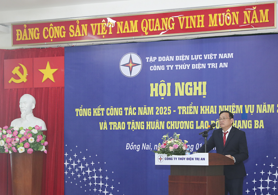 Hội nghị tổng kết công tác năm 2025, triển khai nhiệm vụ năm 2026 của Công ty Thuỷ điện Trị An được tổ chức sáng 12/1, tại Đồng Nai.