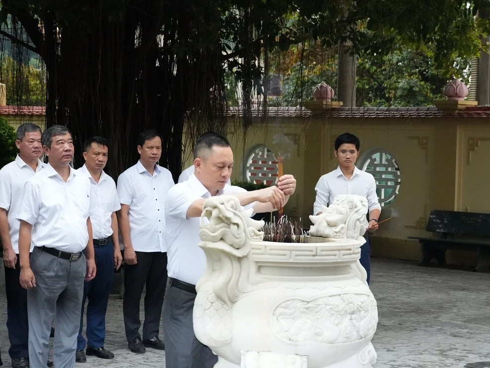 Đồng chí Hoàng Hải - Bí thư Đảng ủy, Giám đốc Công ty cùng Ban lãnh đạo và CBCNV Công ty dâng hương tại Nhà bia tưởng niệm khu di tích lịch sử cấp quốc gia Nhà máy điện Hàm Rồng.
