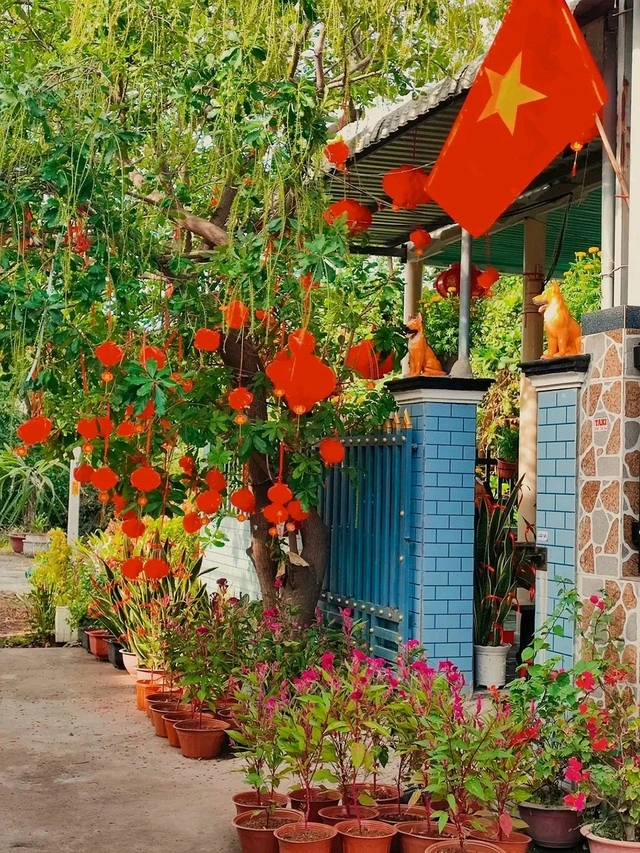 Hiên nhà thoáng đãng, mát mẻ ngát hương hoa lá của gia đình tác giả Hương Cỏ. Ảnh: tác giả cung cấp