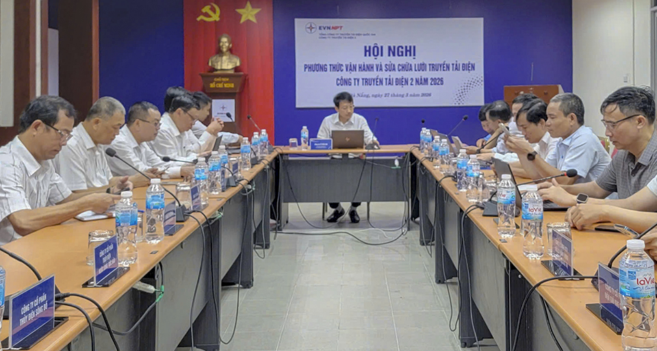 Ngày 27/3 tại Đà Nẵng, Công ty Truyền tải điện 2 (PTC2) tổ chức Hội nghị phương thức vận hành và sửa chữa lưới điện truyền tải năm 2026. Hội nghị do ông Lê Tuấn Anh – Phó Giám đốc PTC2 chủ trì, với sự tham dự của đại diện các ban chuyên môn Tổng công ty Truyền tải điện Quốc gia (EVNNPT), Công ty TNHH MTV Vận hành hệ thống điện và thị trường điện Quốc gia (NSMO), Trung tâm Điều độ hệ thống điện miền Trung (CSO), các nhà máy điện đấu nối.