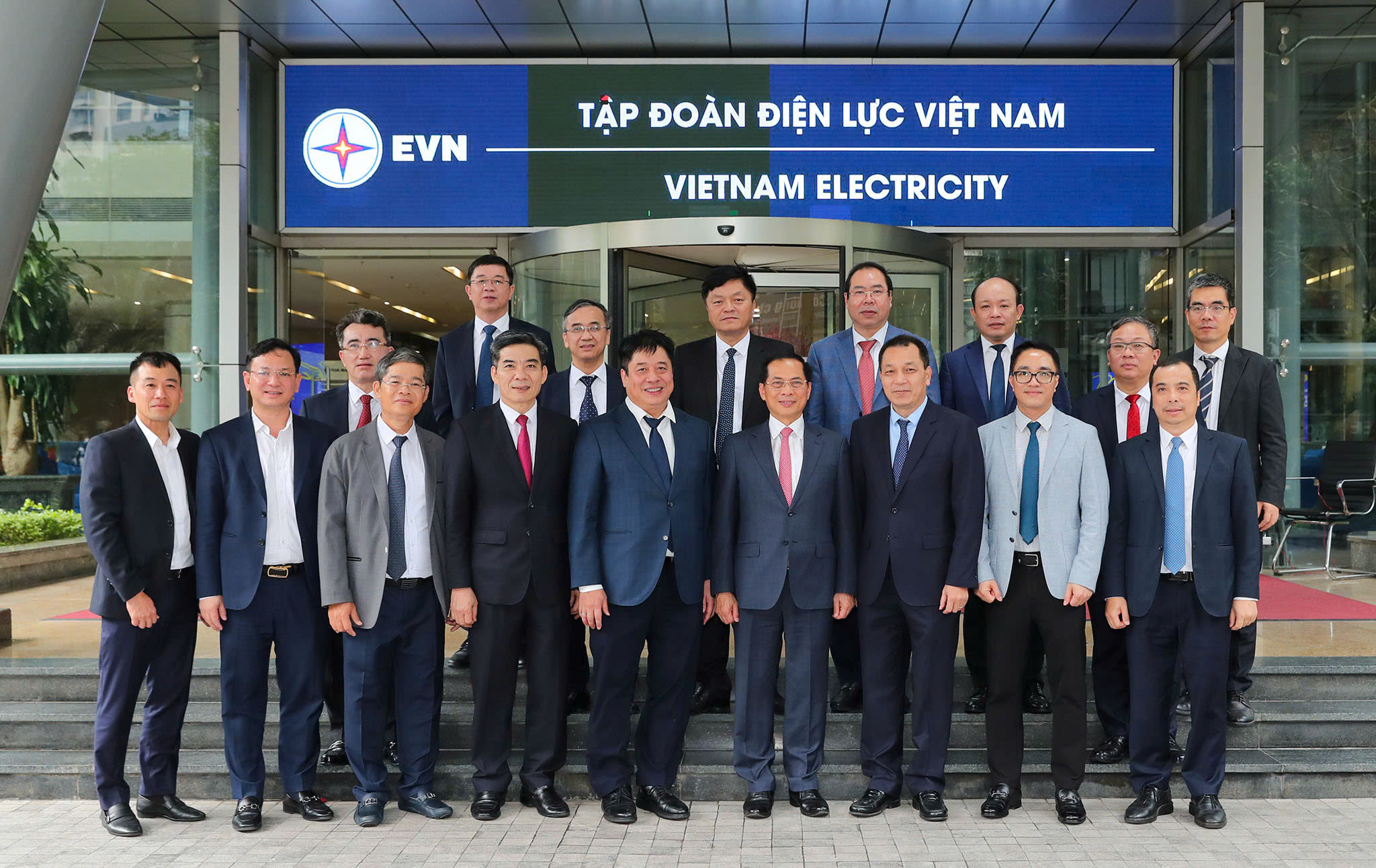 Phó Thủ tướng Chính phủ Bùi Thanh Sơn cùng các đồng chí trong đoàn công tác và lãnh đạo Tập đoàn Điện lực Việt Nam. Ảnh: Ng.Tuấn