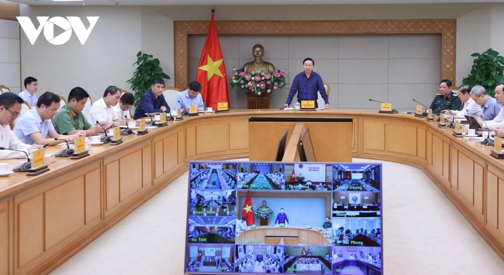 Phó Thủ tướng Trần Hồng Hà chủ trì cuộc họp ứng phó cơn bão số 11 (MATMO). Nguồn ảnh: vov.vn
