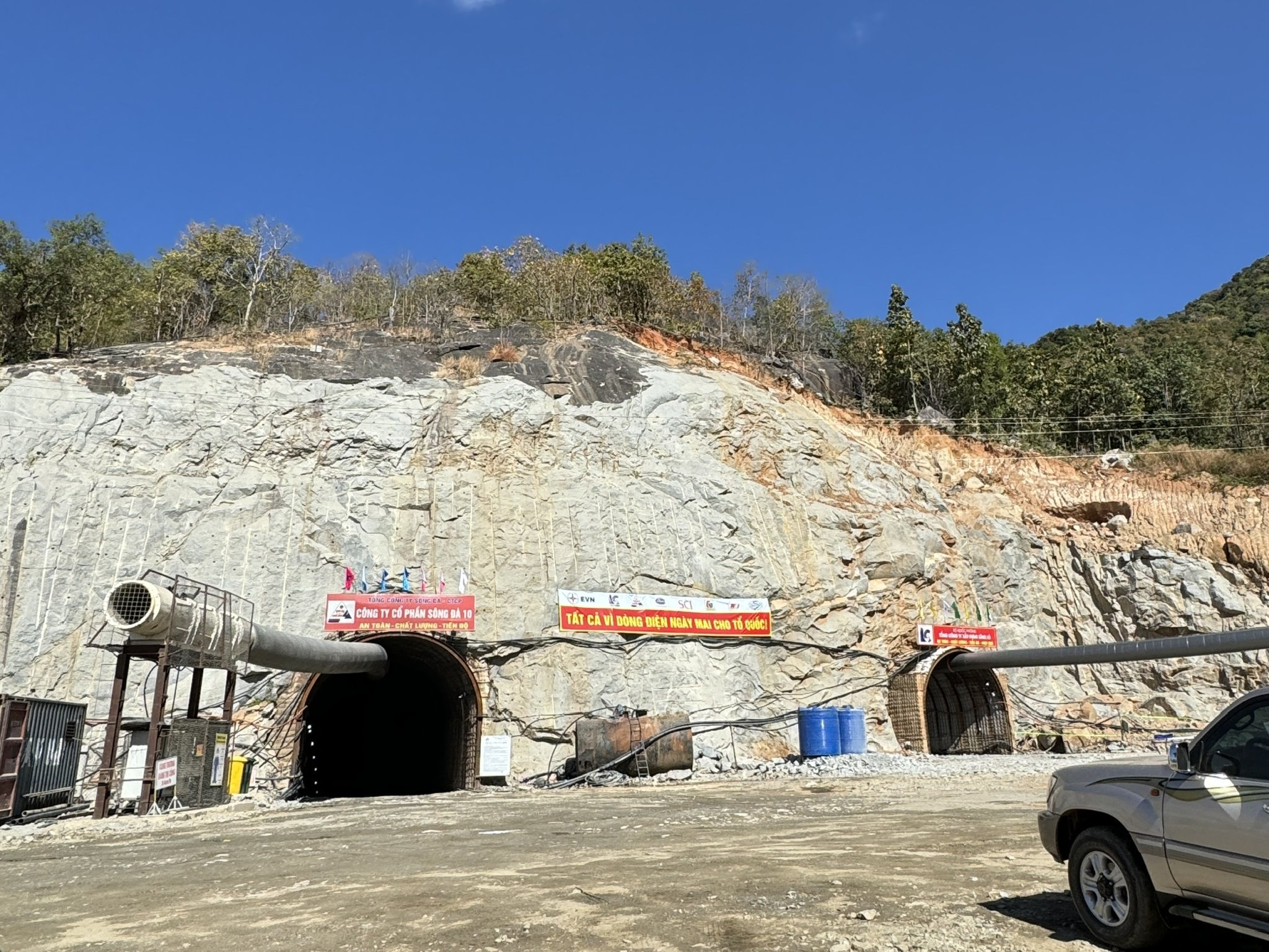 Gói thầu thi công các hạng mục ngầm là một trong những phần việc khó khăn nhất của dự án. Các đơn vị thi công đã có nhiều sáng kiến cải tiến kỹ thuật, tối ưu hóa quy trình nổ mìn, vận chuyển đất đá để đẩy nhanh tiến độ.Trong ảnh: Bên ngoài cửa hầm VH3A (ảnh bên trái); hầm cáp điện - thoát gió và hầm thi công (ảnh bên phải).