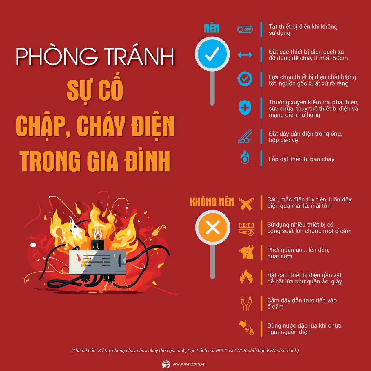 Chập, cháy điện là mối nguy hiểm tiềm ẩn trong mọi gia đình. Theo dõi Infographic dưới đây để nắm rõ biện pháp phòng tránh sự cố chập, cháy điện trong gia đình.