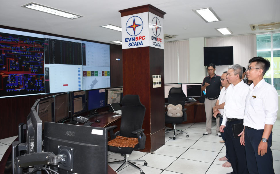 Các đại biểu, nhà báo, phóng viên tham quan Trung tâm Điều hành Scada của EVNSPC
