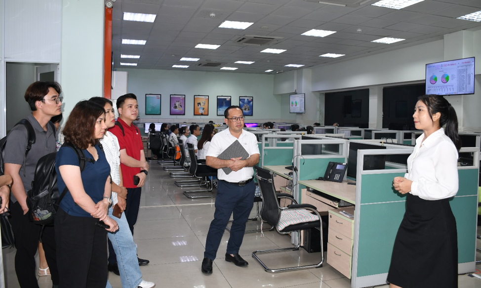 Các nhà báo, phóng viên tham quan Trung tâm Chăm sóc khách hàng của EVNSPC