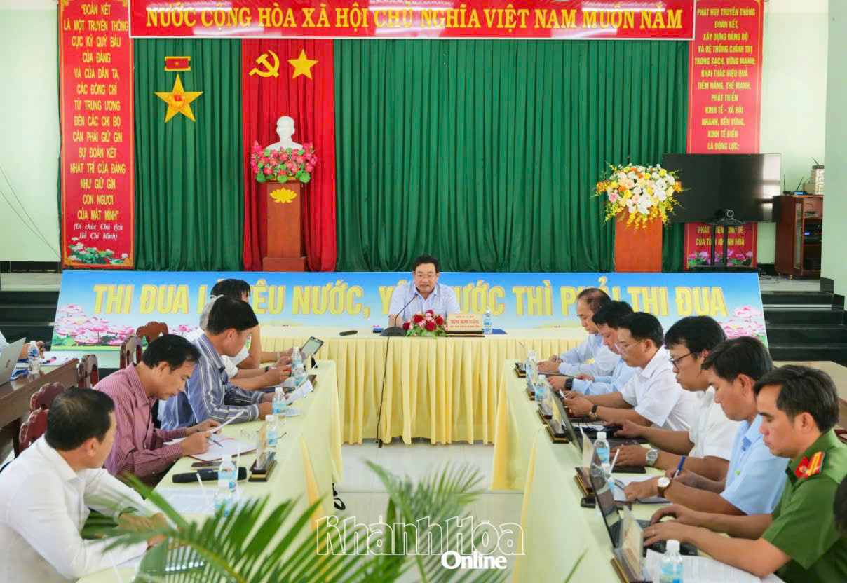 Chiều 20/4, tại xã Phước Dinh, đồng chí Trịnh Minh Hoàng – Phó Chủ tịch UBND tỉnh Khánh Hòa có buổi làm việc với UBND xã về tình hình thực hiện bồi thường, hỗ trợ, tái định cư và giải phóng mặt bằng Dự án Nhà máy điện hạt nhân Ninh Thuận 1. Cùng dự có lãnh đạo các sở, ngành, đơn vị liên quan.