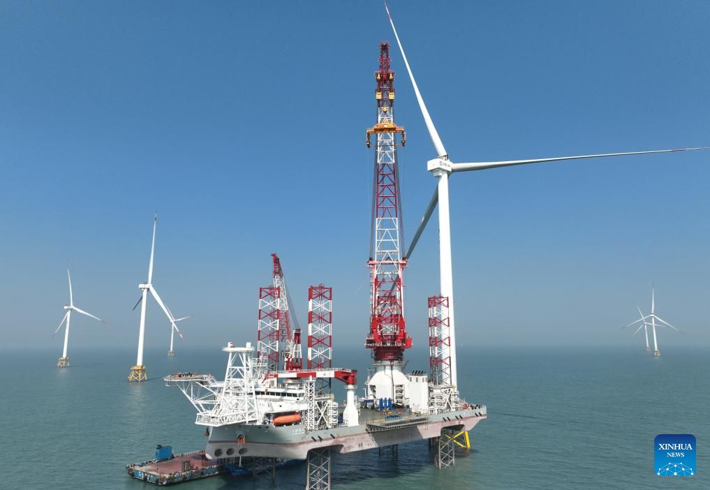 Tập đoàn Tam Hiệp cho biết, tuabin gió ngoài khơi mạnh nhất toàn cầu đã bắt đầu phát điện thương mại. Ảnh: Xinhua