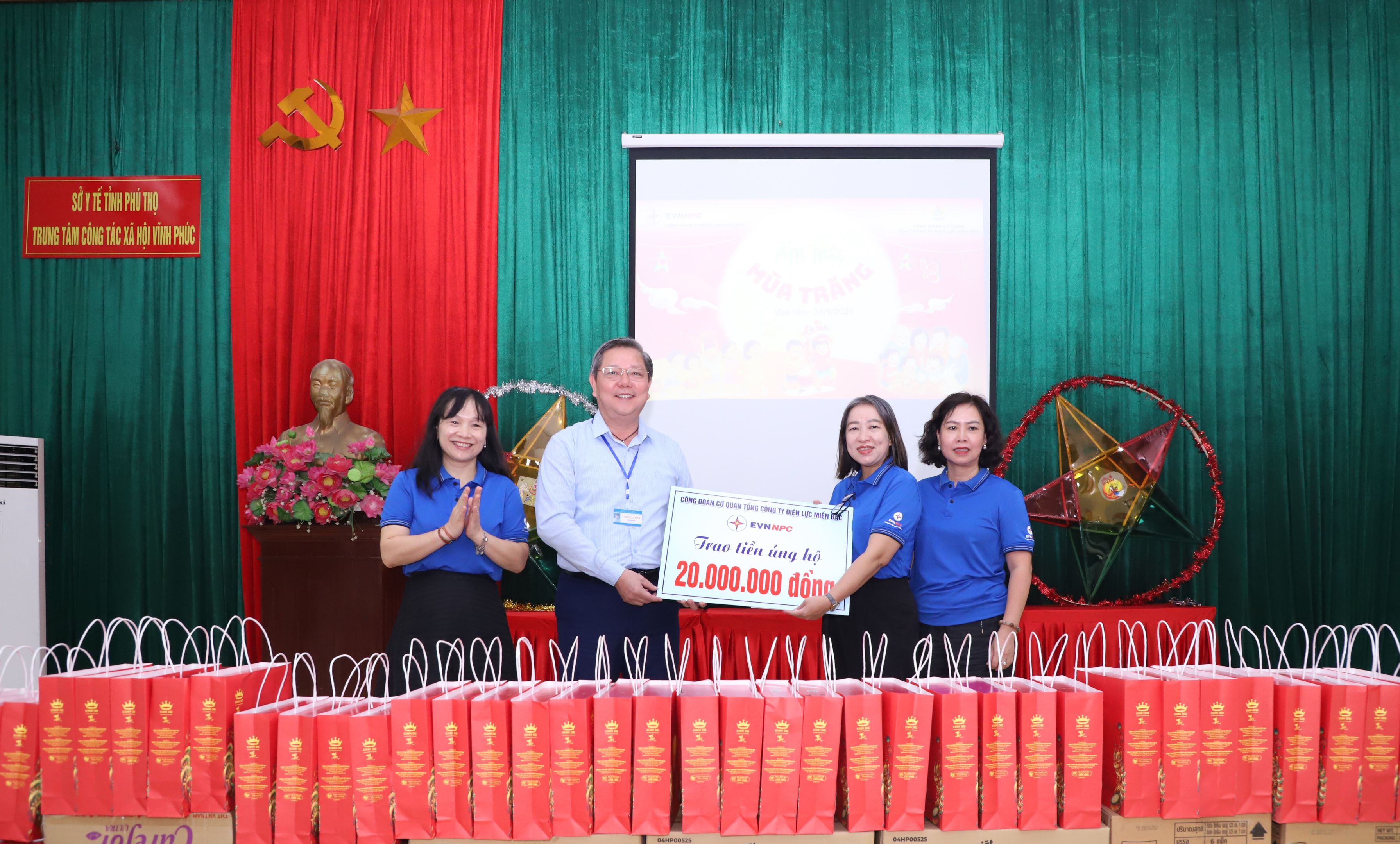 Dịp này, đoàn đã trao 20 triệu đồng hỗ trợ Trung tâm mua sắm thuốc men, vật tư y tế; tặng 93 phần quà gồm các nhu yếu phẩm thiết thực như xà phòng, dầu gội, khăn mặt, nước xả vải, mũ len, bánh Trung thu cho các em nhỏ; đồng thời tổ chức “bữa ăn yêu thương” với 100 suất bánh kẹo dành cho các cụ và các cháu tại Trung tâm. Kinh phí thực hiện chương trình được quyên góp từ các cá nhân, tổ công đoàn thuộc Công đoàn Cơ quan EVNNPC cùng một số cán bộ hảo tâm trong EVN.