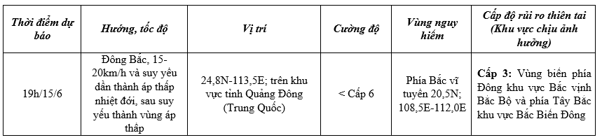 Hướng và tốc độ di chuyển: di chuyển theo hướng Đông Bắc, tốc độ 15–20km/h.