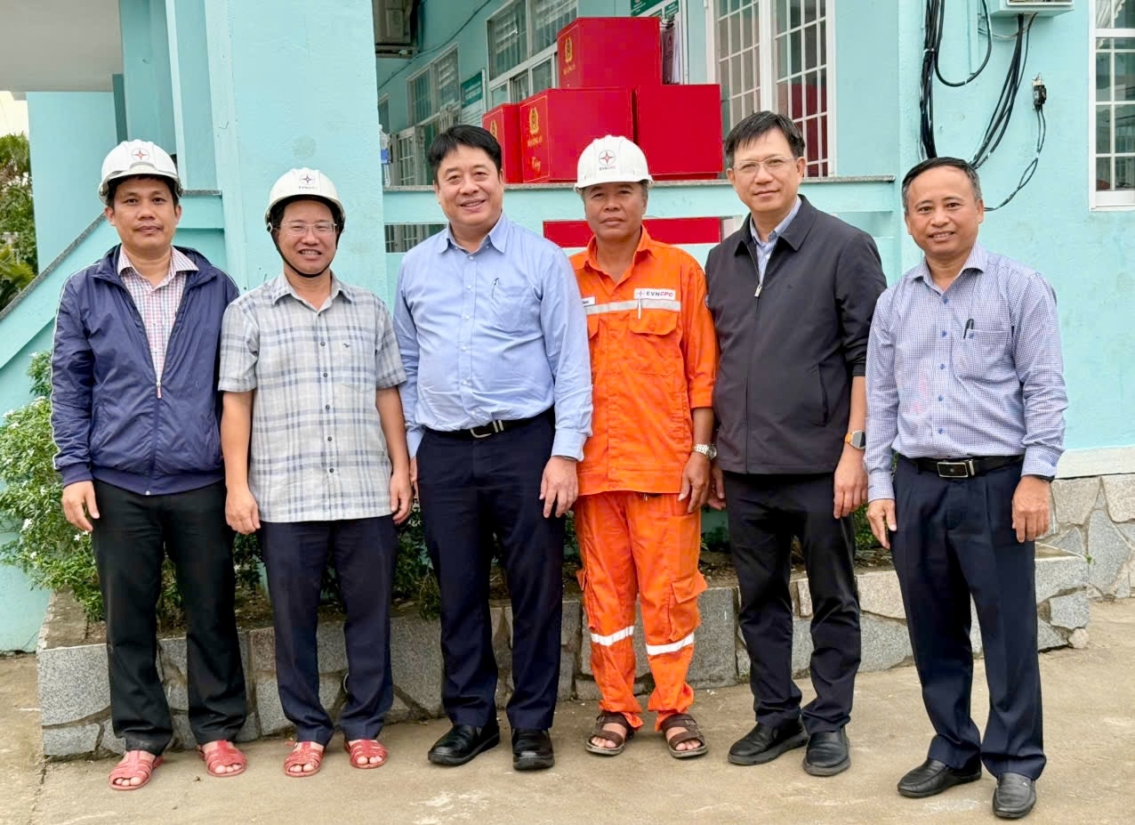 Tổng giám đốc EVN Nguyễn Anh Tuấn (thứ 3 từ trái sang) thăm, động viên CBCNV PC Đắk Lắk
