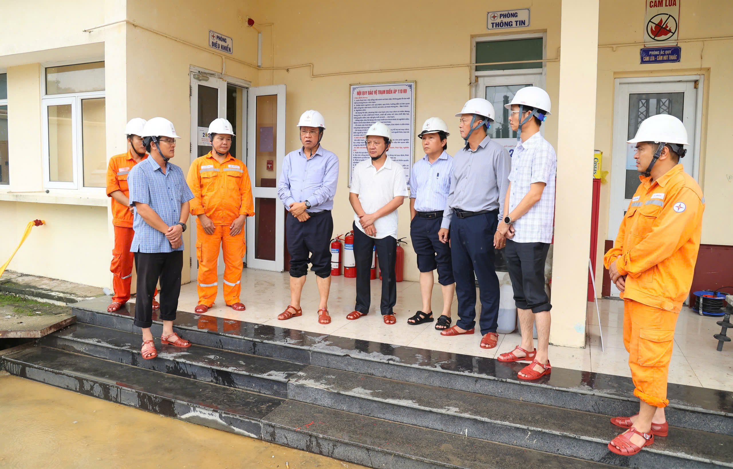 Tổng giám đốc EVNCPC Ngô Tấn Cư (thứ 4 từ trái sang) thăm, động viên CBCNV PC Huế tại TBA 110kV Huế 2, TP Huế
