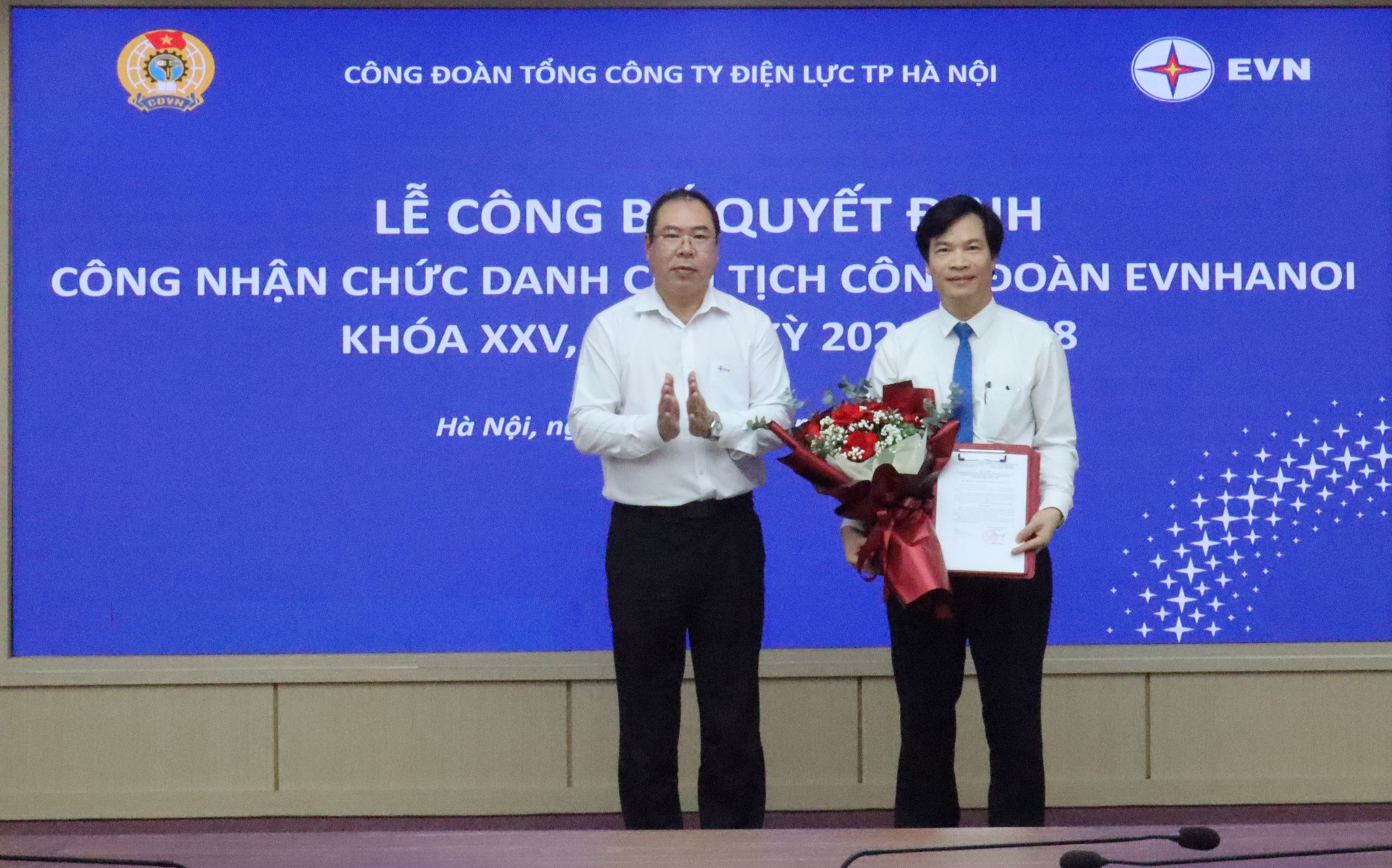 Ngày 27/10, tại Hà Nội, ông Đỗ Đức Hùng - Chủ tịch Công đoàn Điện lực Việt Nam đã trao Quyết định số 506/QĐ-CĐĐVN cho ông Đoàn Đức Tiến – Trưởng ban Tổng hợp Hội đồng thành viên Tổng công ty Điện lực Thành phố Hà Nội (EVNHANOI) giữ chức Chủ tịch Công đoàn Tổng công ty khóa XXV, nhiệm kỳ 2023–2028.