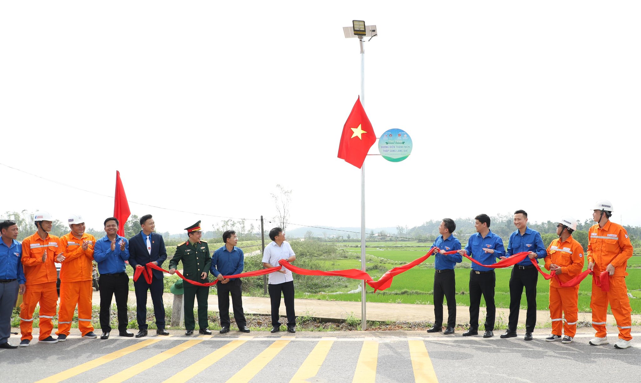 Nhiều hoạt động an sinh xã hội đã được tuổi trẻ EVN triển khai. Trong ảnh: Đoàn Thanh niên Tổng công ty Điện lực TP Hồ Chí Minh (EVNHCMC) triển khai công trình “Thắp sáng đường quê” tại thôn Tân Long, xã Việt Xuyên, tỉnh Hà Tĩnh. Tuyến chiếu sáng có chiều dài 2km gồm hệ thống cột và khoảng 80 bóng năng lượng mặt trời.