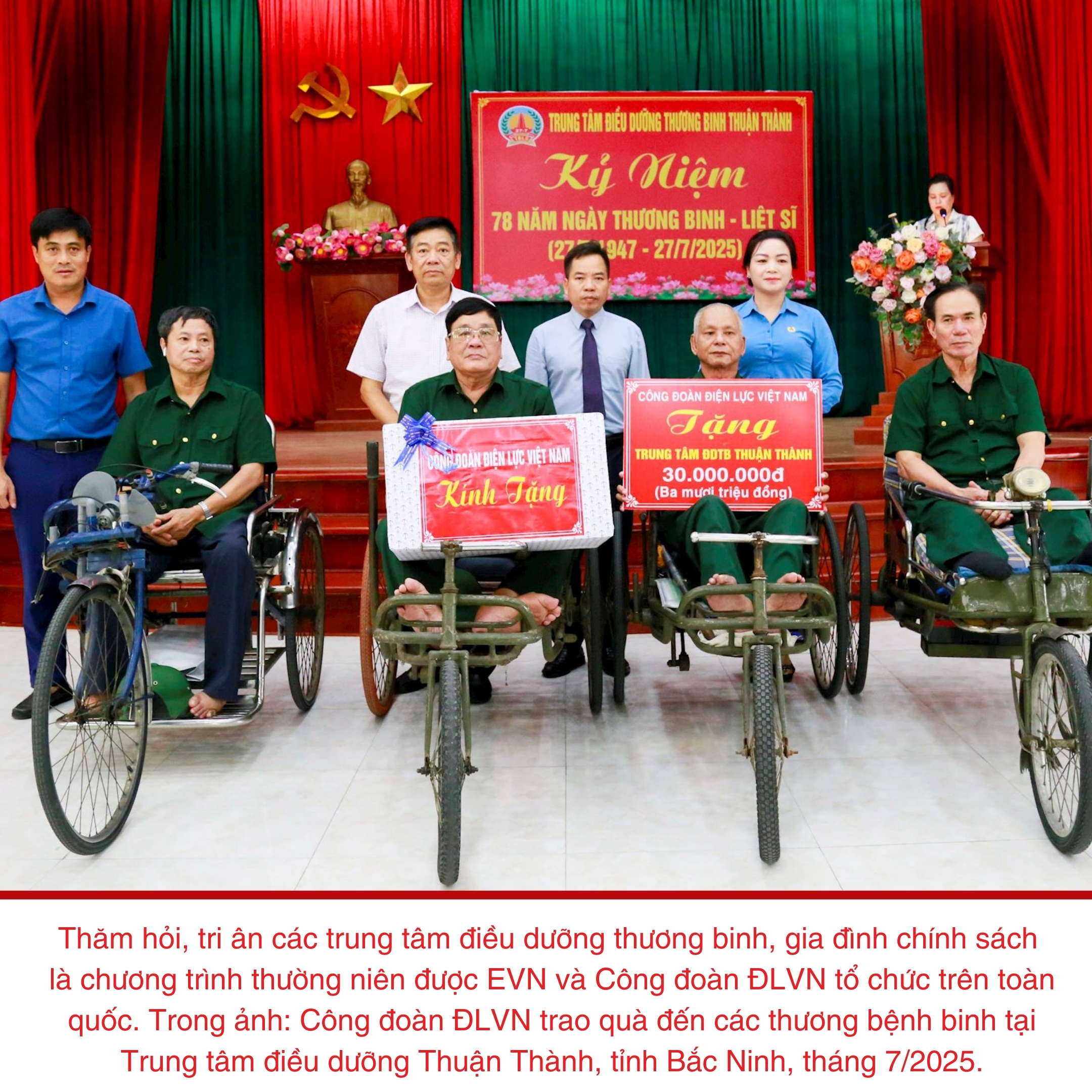 Trong nhiều năm qua, bên cạnh việc lãnh đạo thực hiện nhiệm vụ chính trị là đảm bảo cung cấp điện phục vụ phát triển kinh tế xã hội của đất nước và sinh hoạt của nhân dân, Tập đoàn Điện lực Việt Nam (EVN) đã luôn quan tâm chỉ đạo triển khai thực hiện công tác an sinh xã hội. Những hành động cụ thể, chung sức, đồng lòng sẻ chia khó khăn với nhân dân trong mọi hoàn cảnh đã góp phần xây dựng, quảng bá hình ảnh EVN chuyên nghiệp, hiện đại, thân thiện; văn hóa EVN giàu truyền thống, nhân văn; người EVN sáng tạo, tận tâm, đoàn kết và nỗ lực hoàn thành tốt nhiệm vụ.