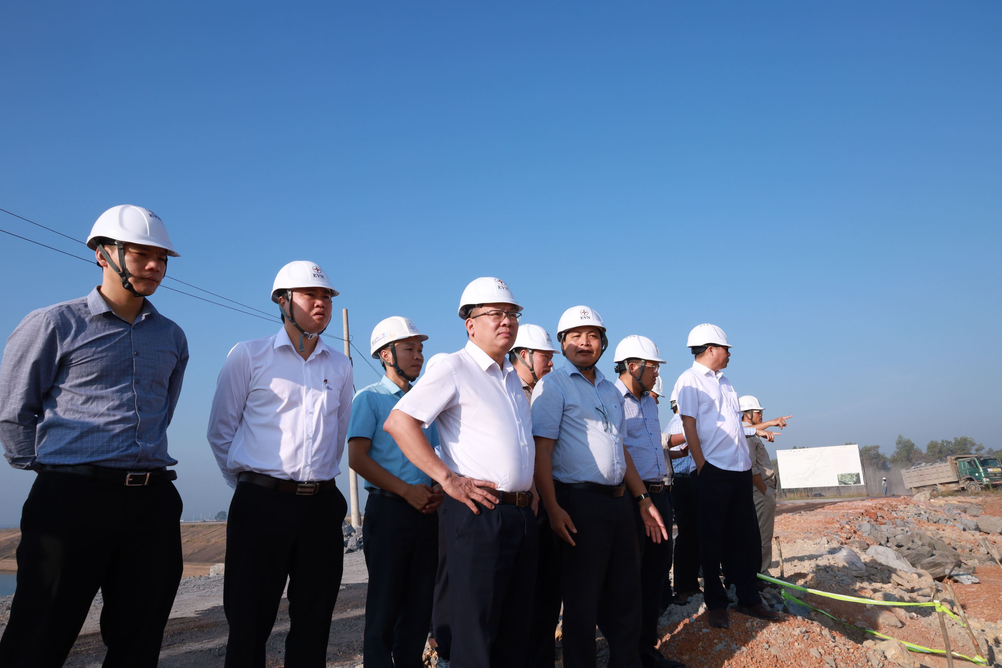 Đoàn công tác kiểm tra thi công hạng mục cửa nhận nước. Trong quý I, hạng mục này đã hoàn thành đào được 116.801 m³ đất đá; đặt mục tiêu thi công đào 127.360 m³ trong quý II để hoàn thành hố móng trước ngày 30/5/2026.