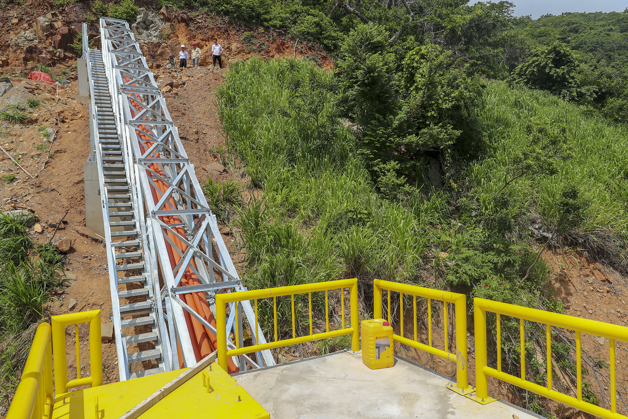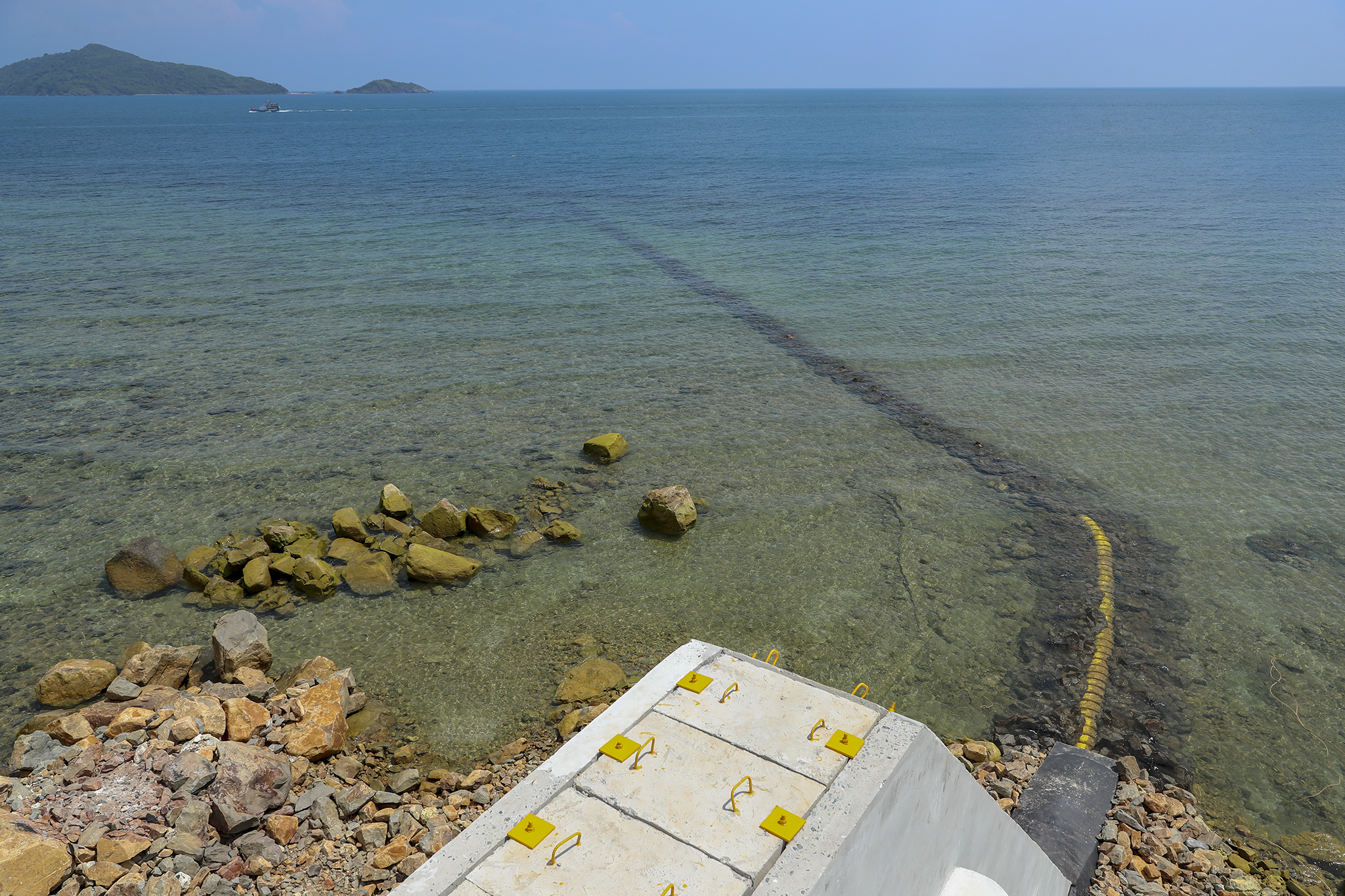 Dự án cấp điện từ lưới điện quốc gia cho Côn Đảo có quy mô cấp điện áp 110kV, tổng chiều dài 103,7km, trong đó cáp ngầm xuyên biển dài 77,7km. Trong ảnh là phần tiếp bờ Côn Đảo, nơi đón nhận nguồn điện lưới quốc gia đến với Côn Đảo.