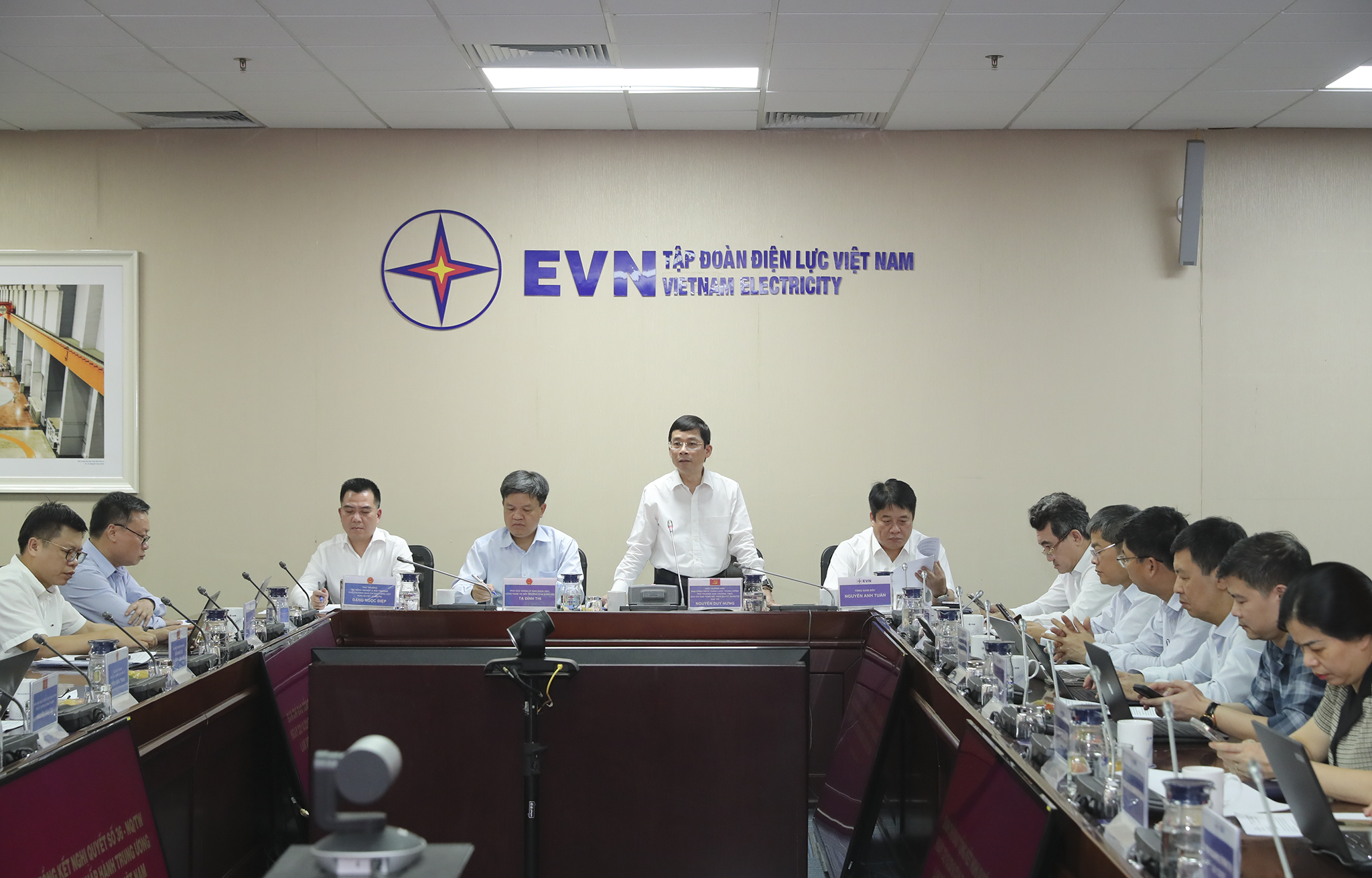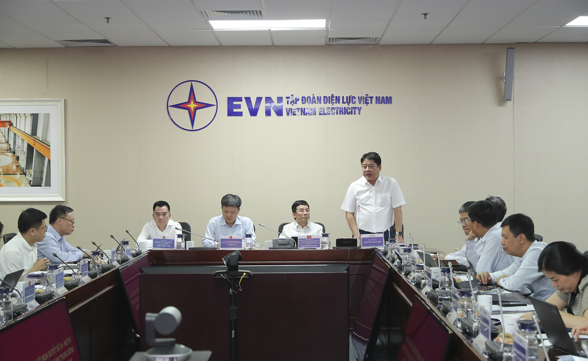 Về phía EVN có đồng chí Nguyễn Anh Tuấn – Phó Bí thư Đảng ủy EVN, Tổng giám đốc EVN; các đồng chí thành viên Hội đồng thành viên, Phó Tổng giám đốc EVN; lãnh đạo các Ban chuyên môn và Văn phòng EVN.