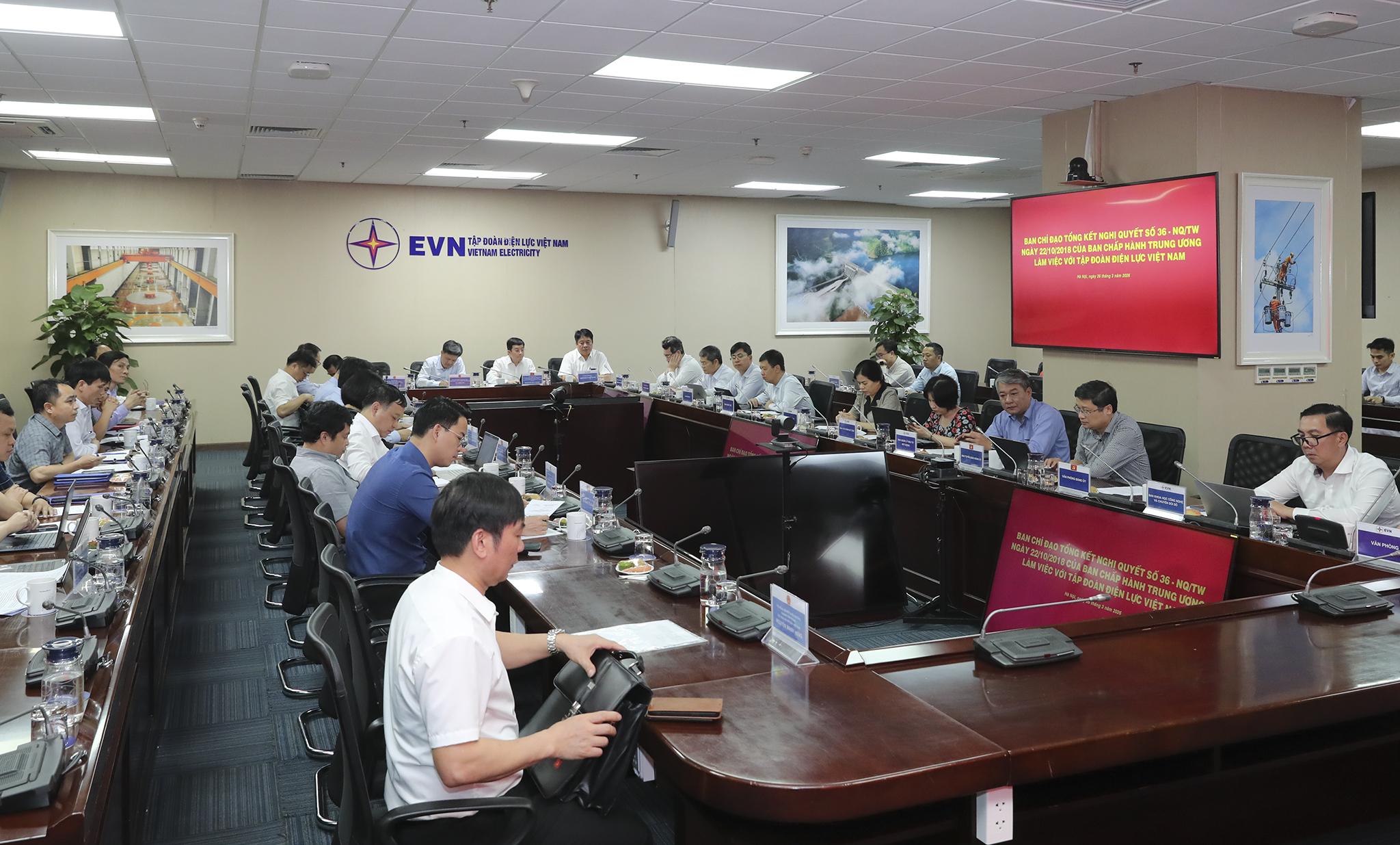 Buổi làm việc của Ban chỉ đạo Tổng kết Nghị quyết số 36 -NQ/TW ngày 22/10/2018 của Ban Chấp hành Trung với EVN chiều 26/3/2026. Ảnh: Ng.Tuấn