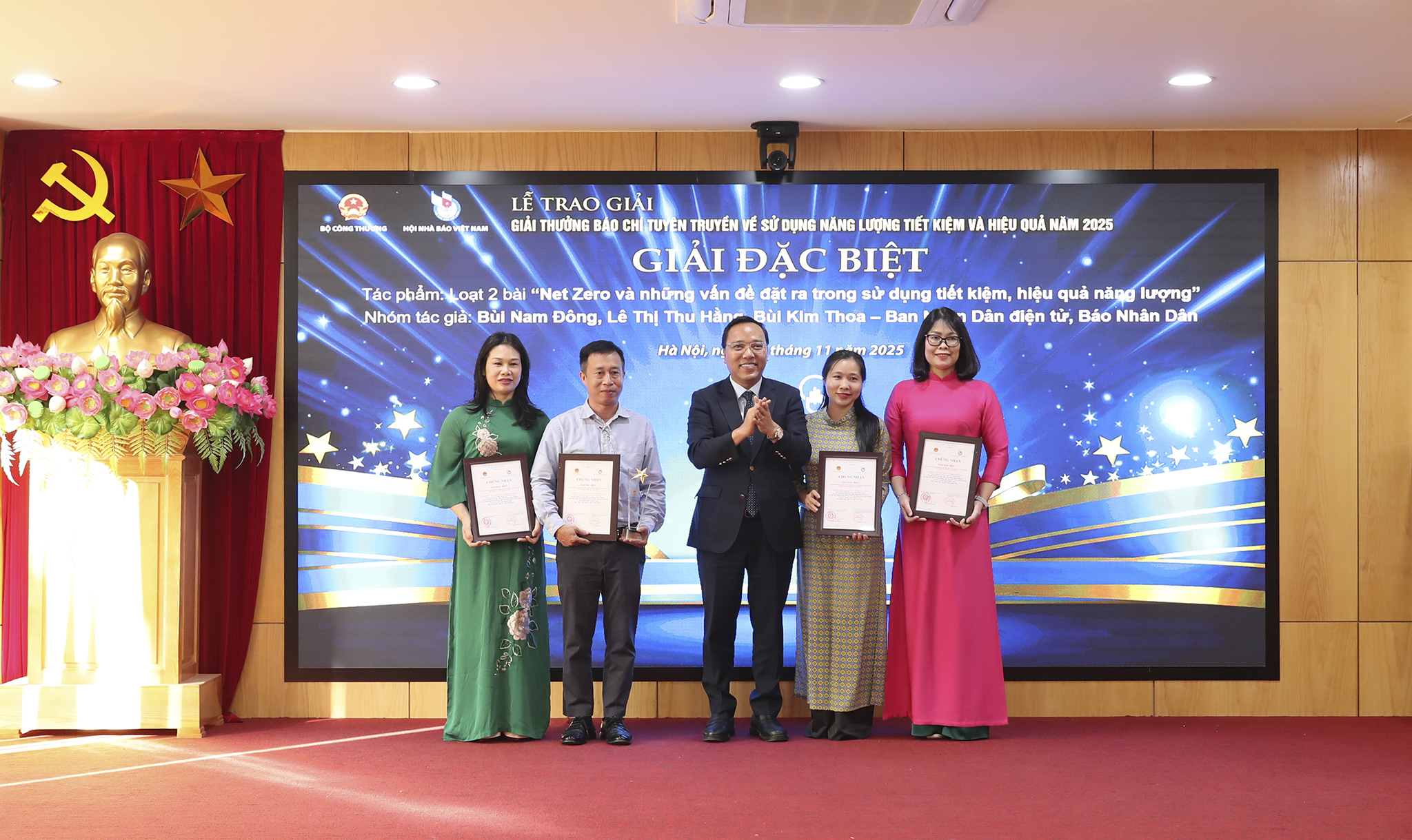 Thứ trưởng Bộ Công Thương Nguyễn Hoàng Long trao giải cho Nhóm tác giả có tác phẩm đạt giải Đặc biệt. Ảnh: Thành Trung