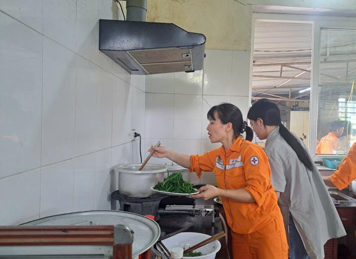 Chị Lê Thị Hồng - Tổ trưởng Nữ công Đội Quản lý Điện lực khu vực Cẩm Xuyên (QLĐLKV) chia sẻ: “Ngay từ trước bão, Công đoàn đã phân công chị em chuẩn bị sẵn lương thực cho những ngày đầu. Nhờ vậy, ngay sau bão tan, chúng tôi kịp nấu cơm nóng, chuẩn bị các suất ăn mang ra hiện trường tiếp tế cho anh em, đồng thời túc trực tại đơn vị để đón anh em trở về khuya muộn, chuẩn bị bữa sáng kịp thời, giúp anh em đảm bảo sức khỏe, sớm đưa dòng điện trở lại với bà con”.