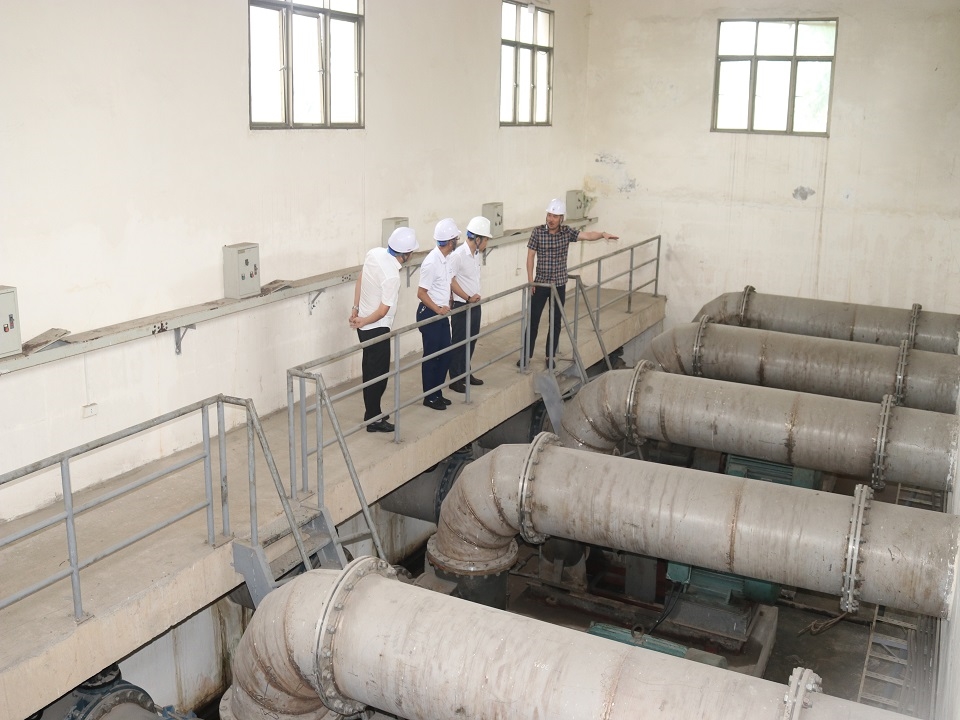 Lãnh đạo Công ty Điện lực Nghệ An cùng đoàn công tác kiểm tra công tác cấp điện tại trạm bơm chống úng trên địa bàn phường Trường Vinh, tỉnh Nghệ An trước khi bão số 3 (Wipha) đổ bộ vào đất liền, chiều 21/7/2025. Ảnh: Thu Thủy