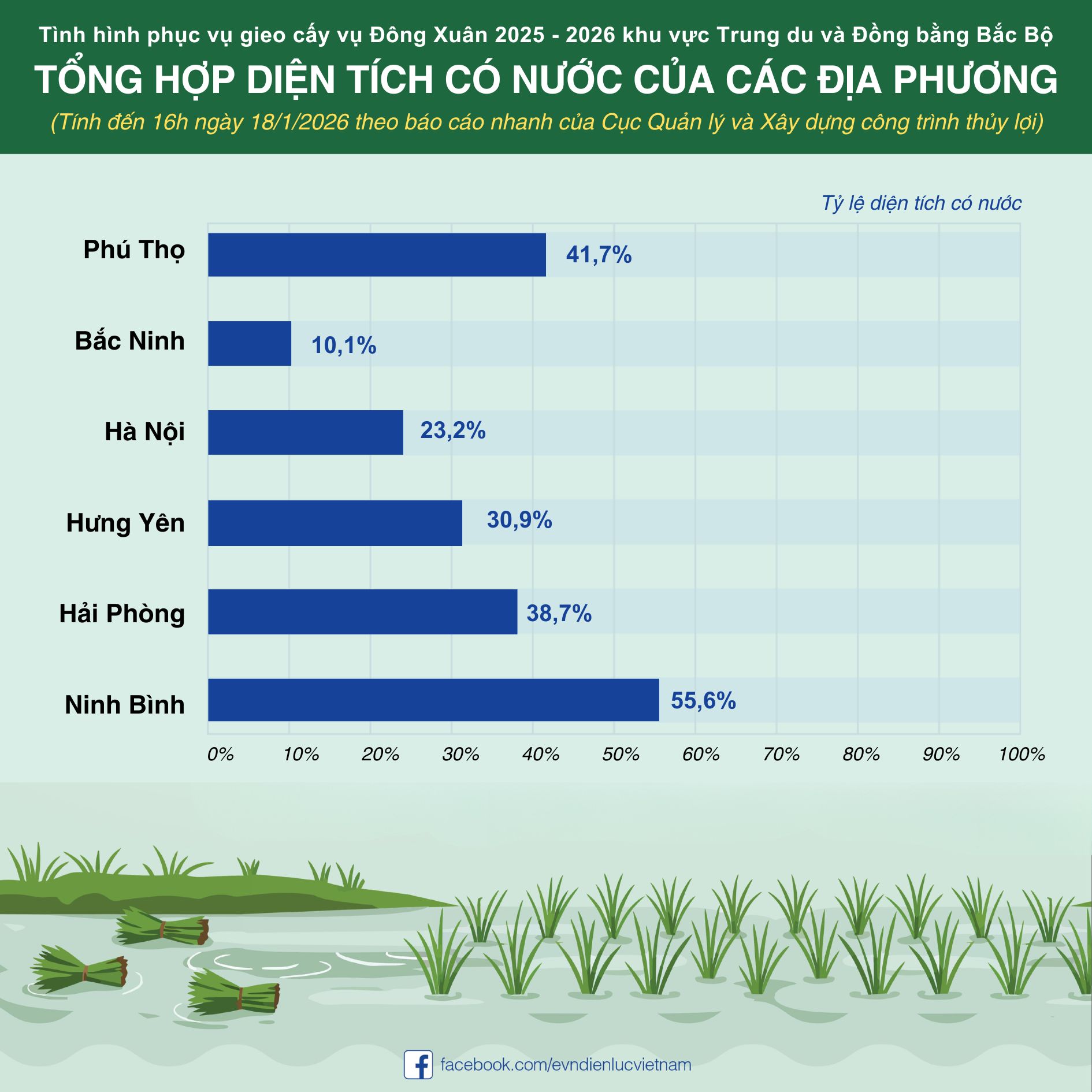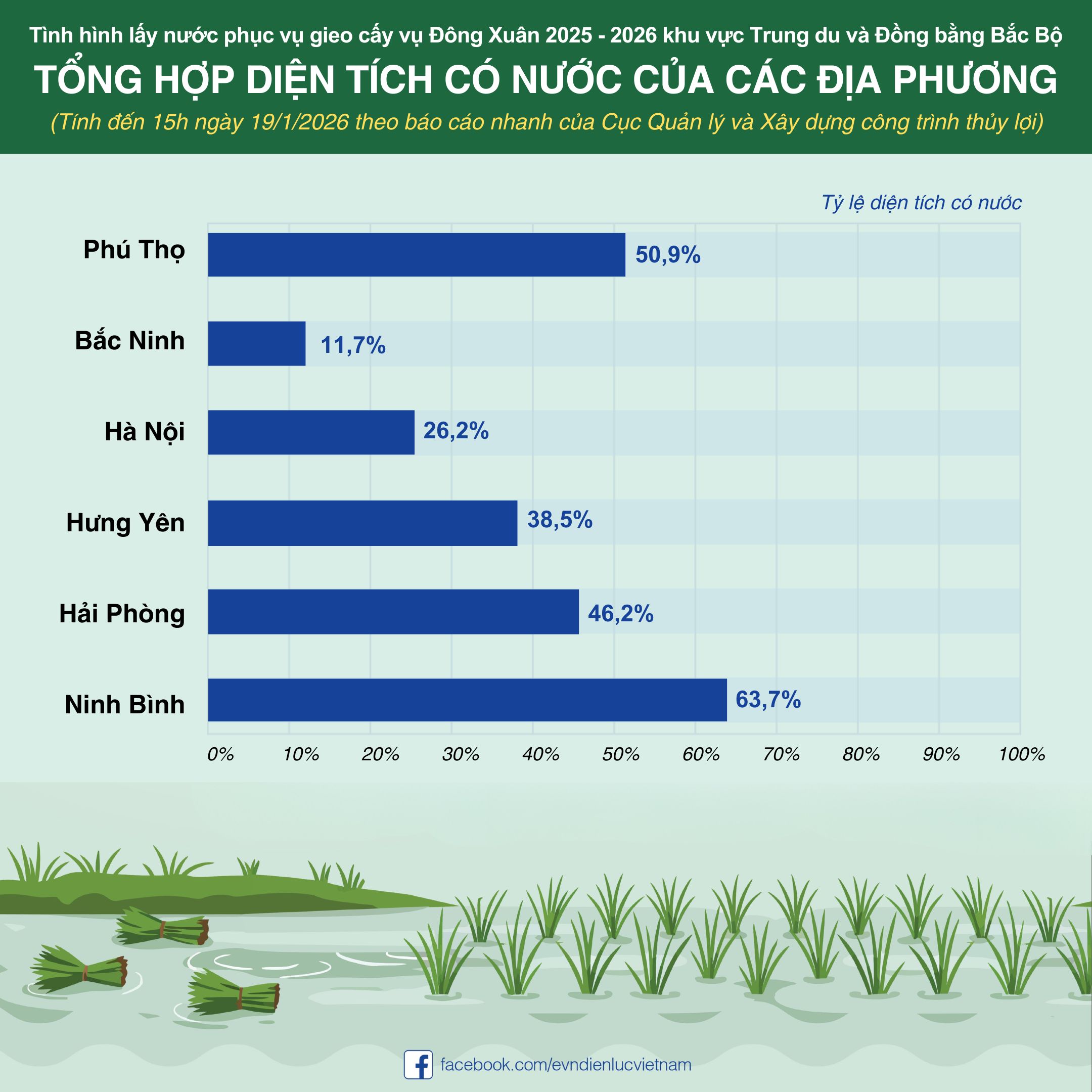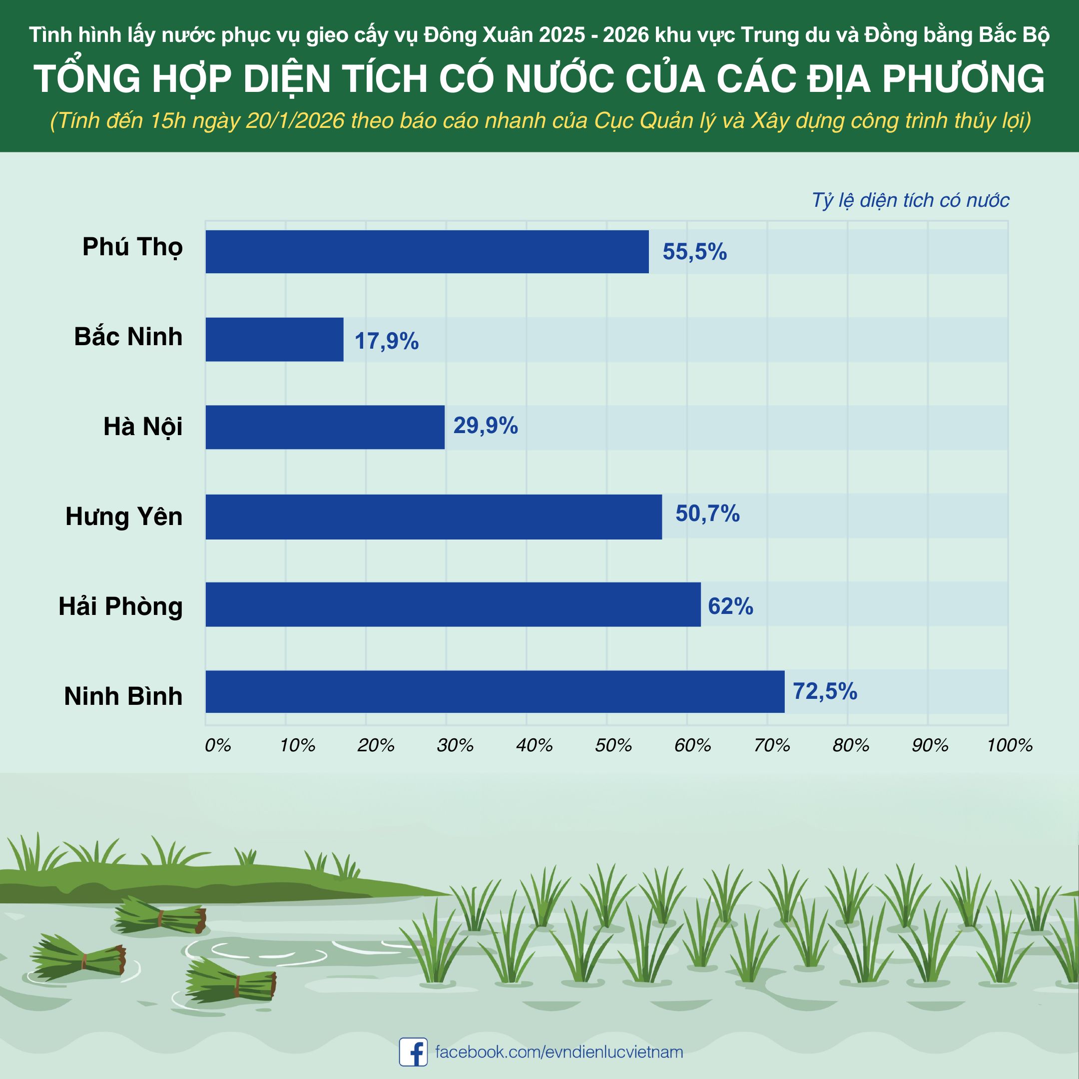 Cập nhật diện tích có nước hằng ngày theo báo cáo nhanh của Cục Quản lý và Xây dựng công trình thủy lợi (Bộ Nông nghiệp và Môi trường).