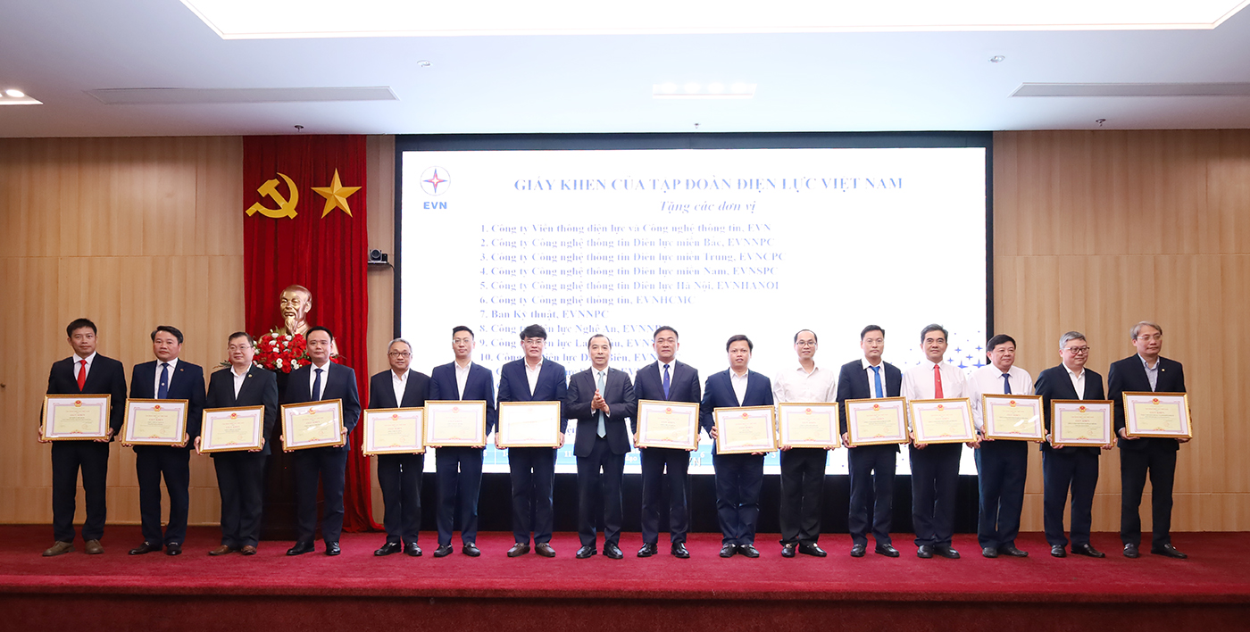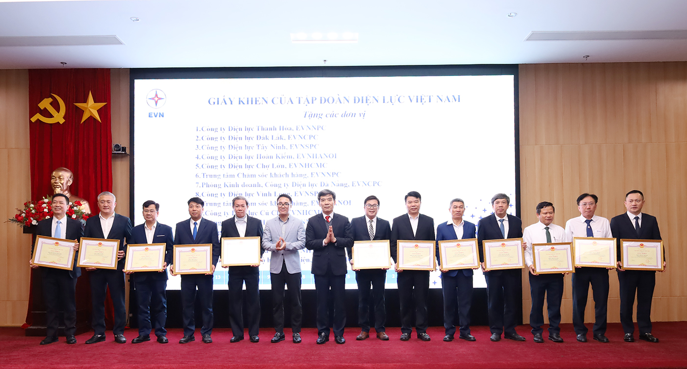 Tại hội nghị, các tập thể có thành tích xuất sắc, hoàn thành các chỉ tiêu kinh doanh, dịch vụ khách hàng năm 2025 đã được nhận khen thưởng của Tập đoàn Điện lực Việt Nam.