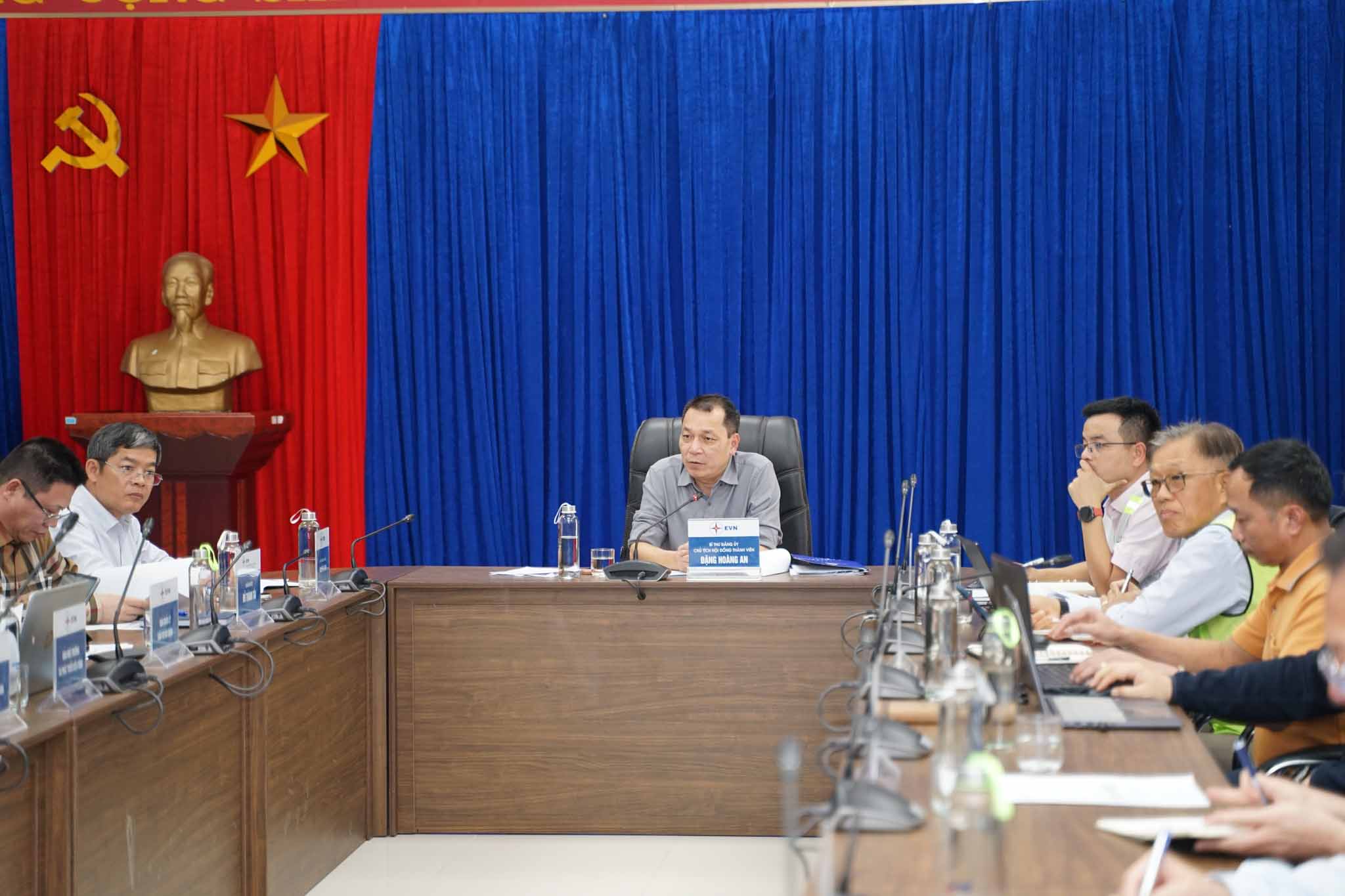 Sau khi kiểm tra thực tế, Chủ tịch Hội đồng thành viên EVN Đặng Hoàng An chủ trì cuộc họp với EVNPMB2 và các nhà thầu về tình hình thi công các dự án.