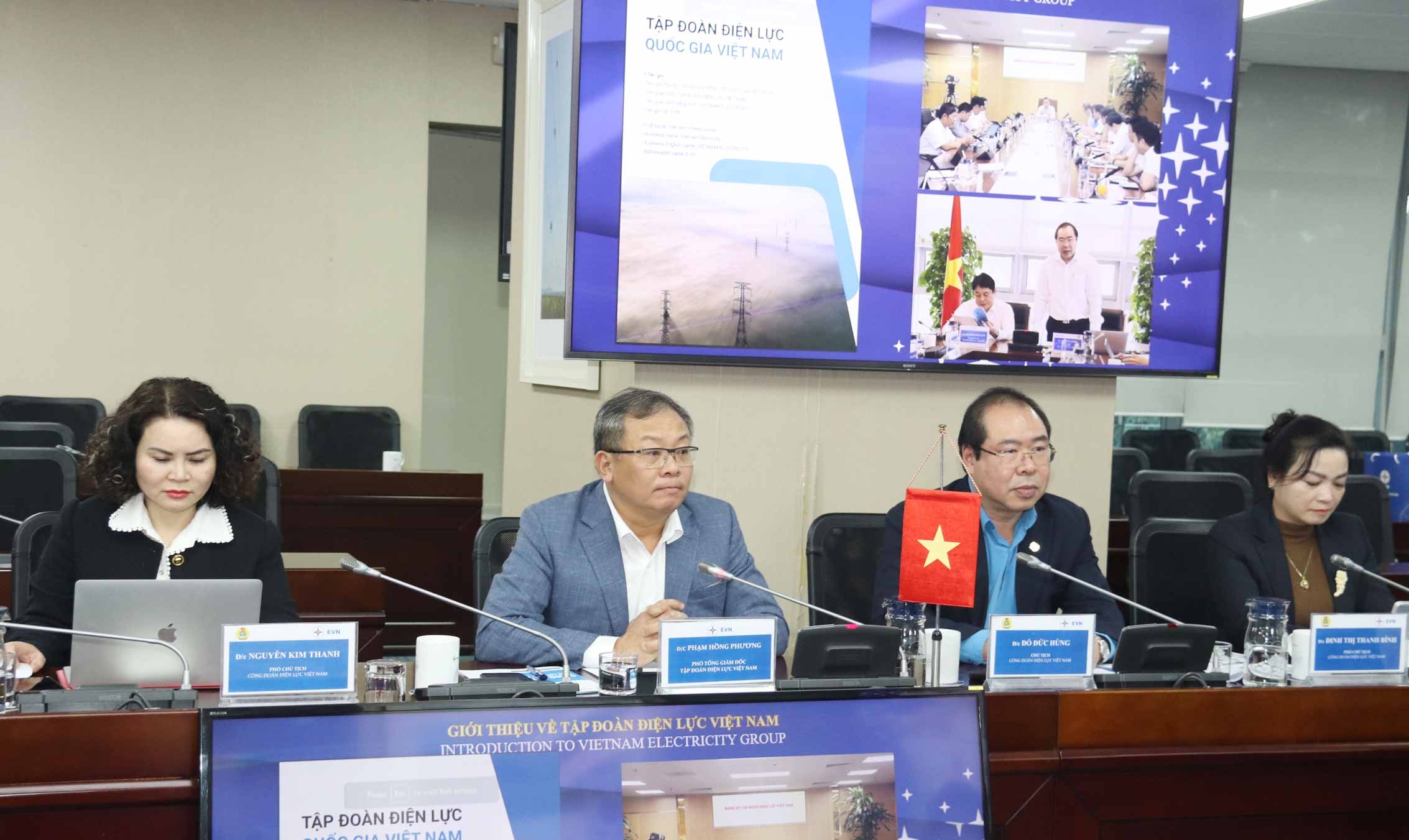 Để làm rõ hơn bức tranh toàn cảnh của đời sống CBCNV-NLĐ Công đoàn ĐLVN trong mục tiêu phát triển chung của ngành Điện Việt Nam, Phó Tổng giám đốc Phạm Hồng Phương đã thông tin đến đoàn công tác phía Hàn Quốc về sơ bộ cơ cấu tổ chức, hoạt động của EVN với vai trò doanh nghiệp Nhà nước chủ lực trong sản xuất và phân phối điện. Sau gần 71 năm lịch sử hình thành và phát triển, EVN hiện đang quản lý khoảng 20 triệu khách hàng dùng điện khắp cả nước. Trong đó, lãnh đạo EVN nhấn mạnh, ngoài nhiệm vụ sản xuất và cung ứng điện, Tập đoàn Điện lực Việt Nam còn được Nhà nước, Chính phủ giao thực hiện nhiều nhiệm vụ chính trị quan trọng nhằm thúc đẩy phát triển kinh tế - xã hội đất nước, đặc biệt là trọng trách đưa điện về các vùng nông thôn, vùng sâu - vùng xa, biên giới - hải đảo... Với nhiệm vụ này, EVN đã thực hiện cung cấp điện năng cho khoảng 99% hộ dân, thuộc nhóm tỷ lệ cao trong khu vực. Trung bình mỗi năm, EVN đang dành khoảng 5 tỷ đô la cho công tác đầu tư - xây dựng các công trình điện nhằm nâng cao sản lượng điện năng và chất lượng cung cấp điện, đáp ứng nhu cầu ngày càng tăng cao.