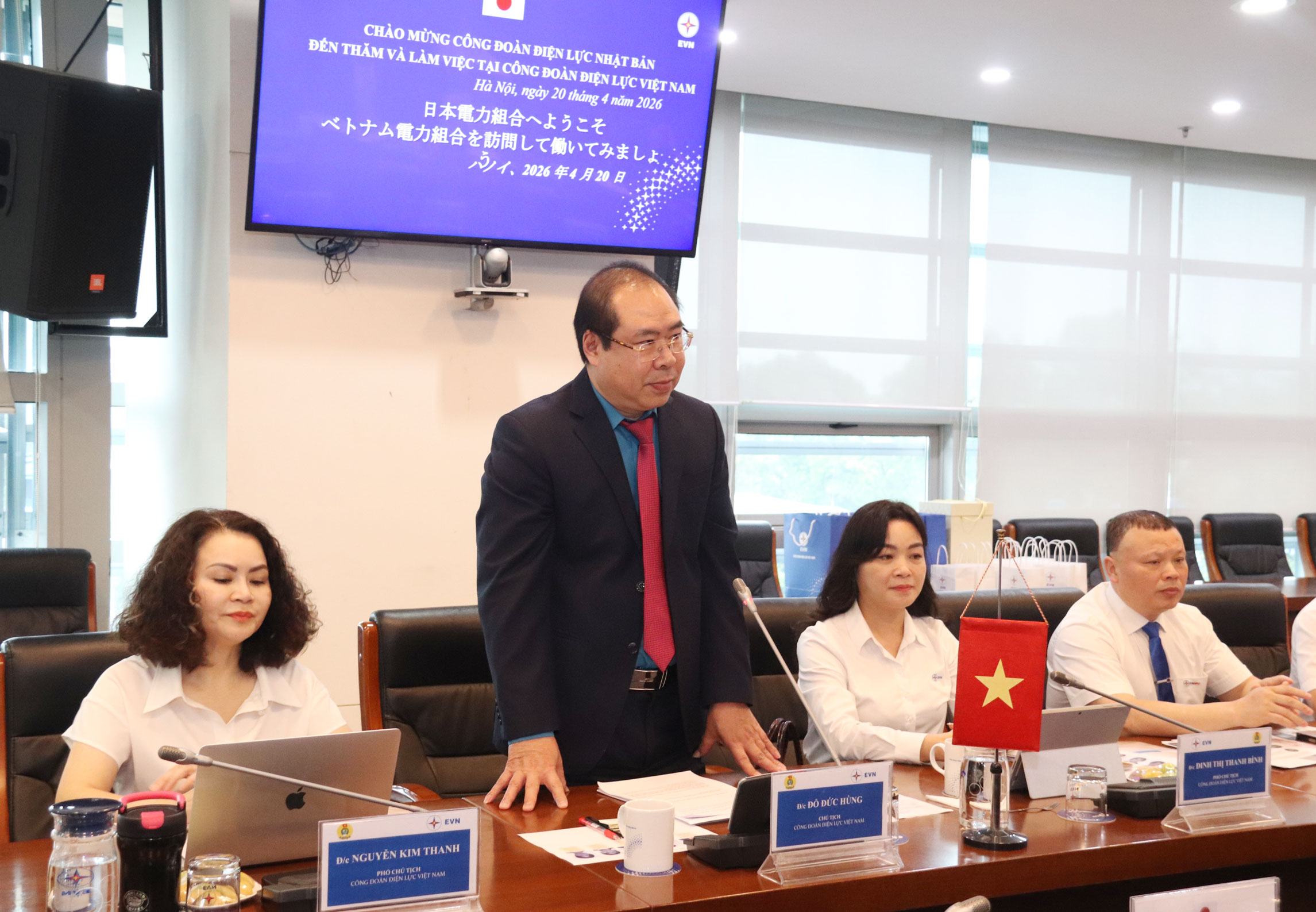 Dự buổi làm việc, về phía Công đoàn Điện lực Nhật Bản có ông Moriya Mibu - Chủ tịch Công đoàn Điện lực Nhật Bản, Trưởng đoàn công tác, cùng các thành viên đoàn công tác là Trưởng ban chuyên môn Công đoàn Điện lực Nhật Bản và lãnh đạo Công đoàn Công ty điện lực thành viên.